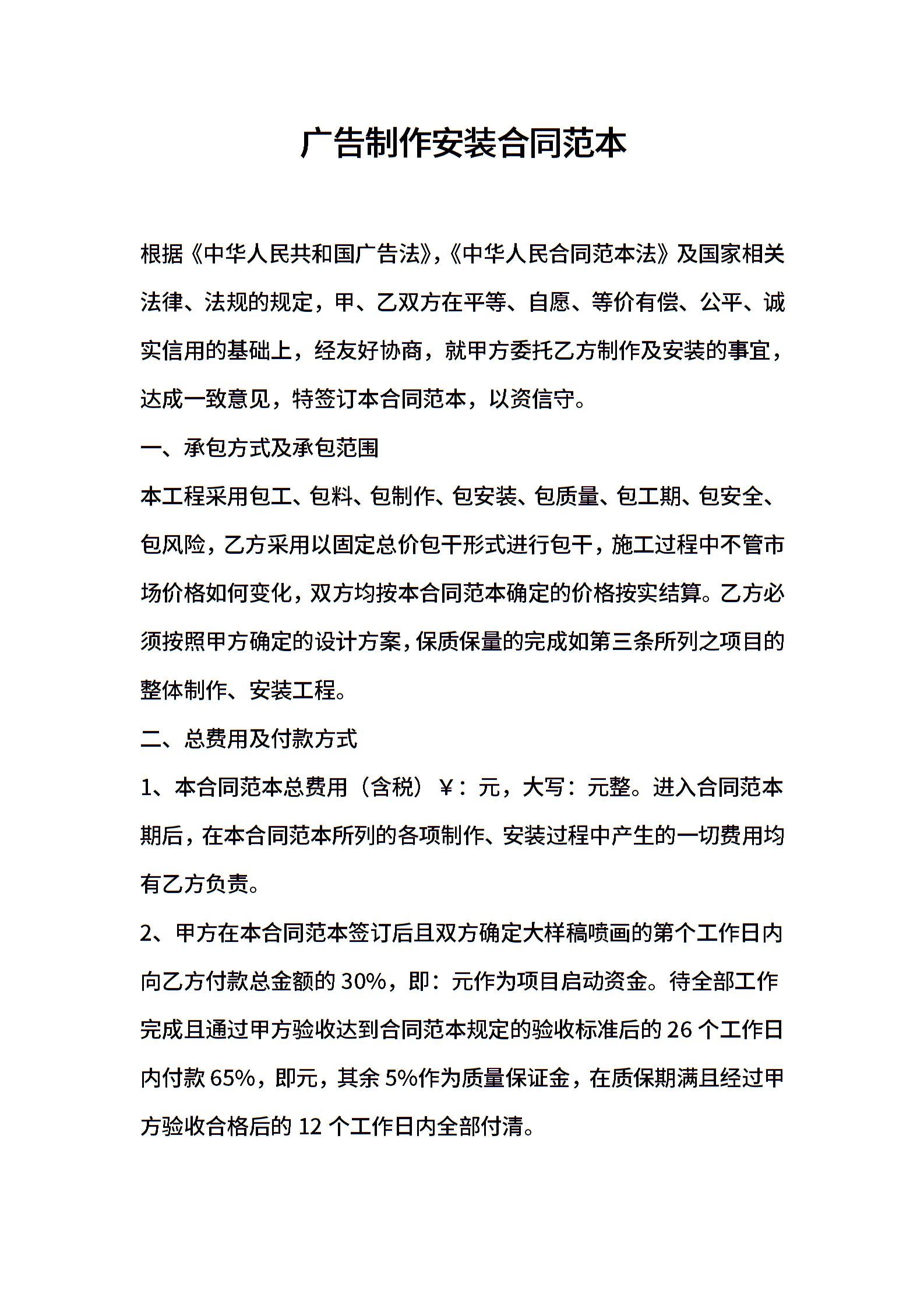 广告制作安装合同范本 (2)