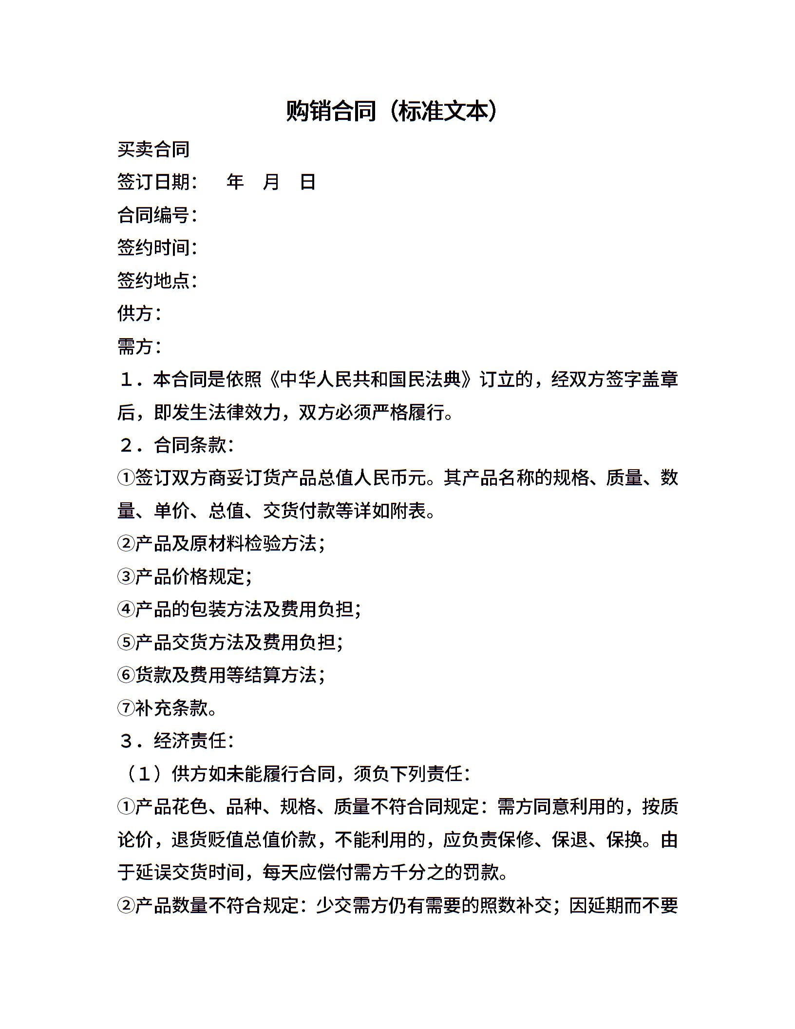 • 分类 购销合同