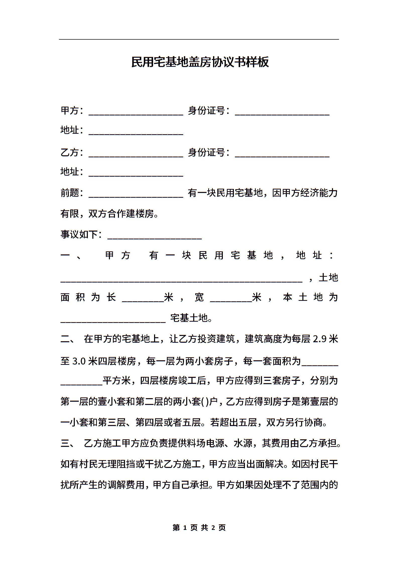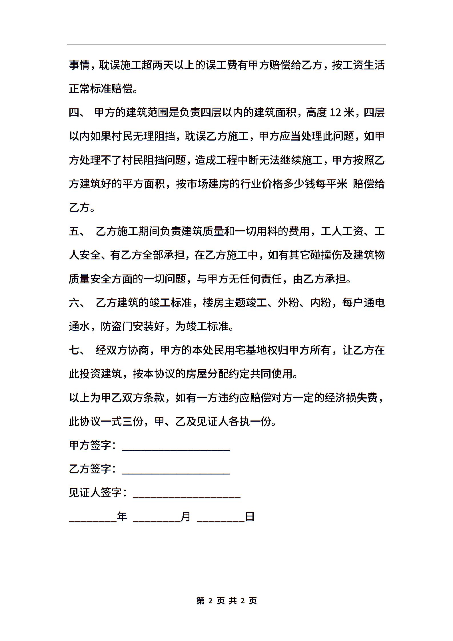 民用宅基地盖房协议书样板