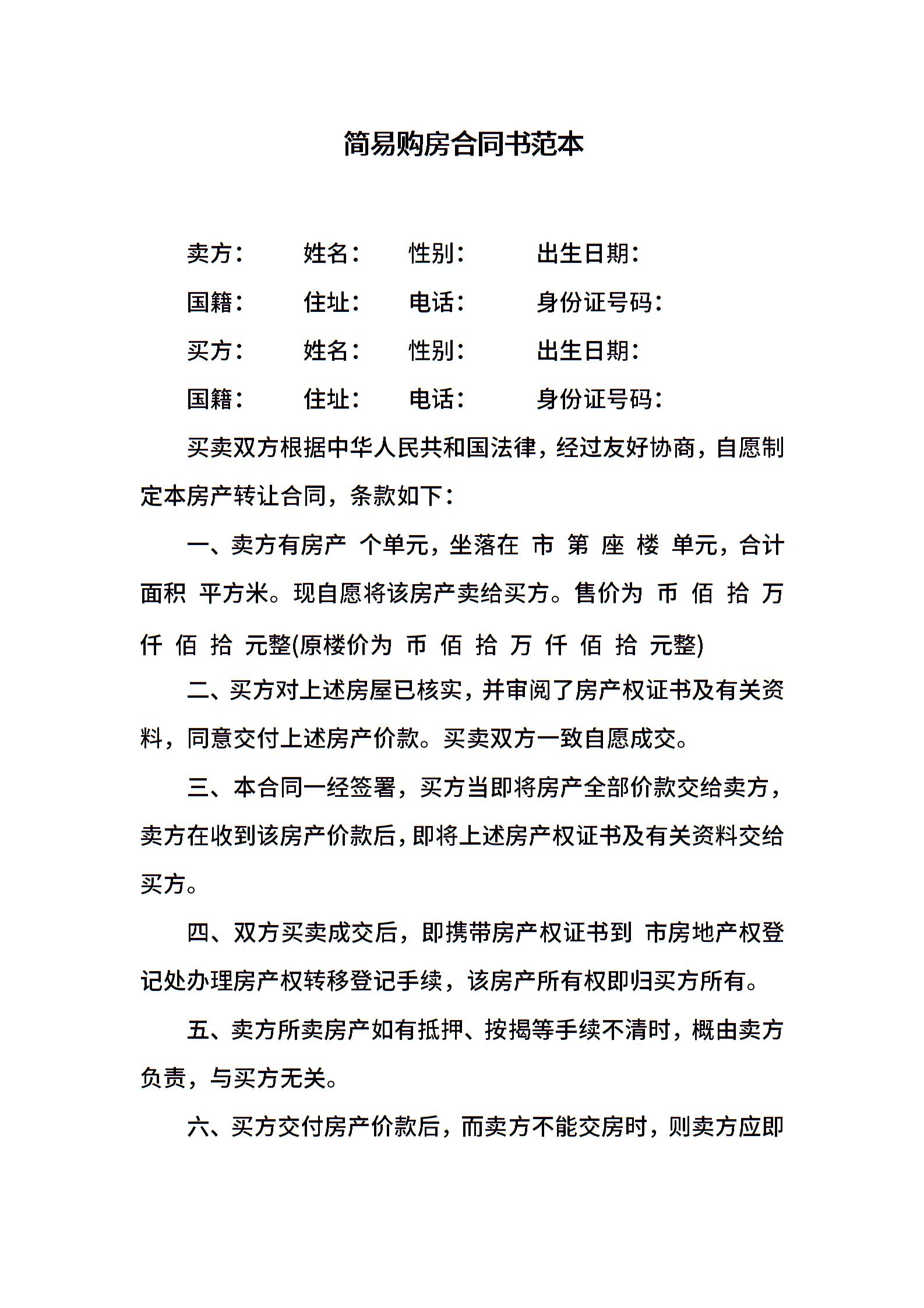 当前位置:量子办公 > 合同模板 > 房屋买卖 >