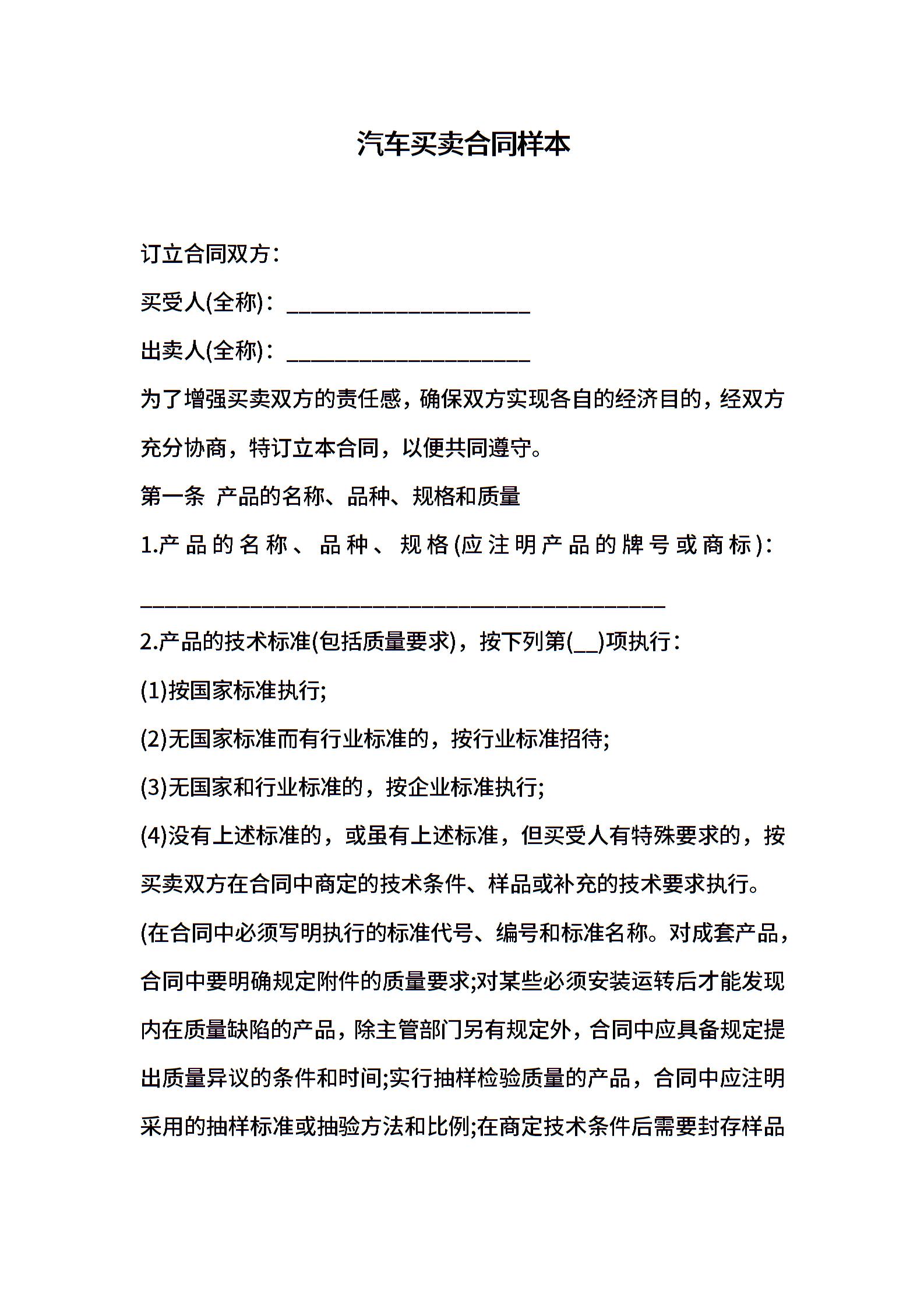 汽车买卖合同样本