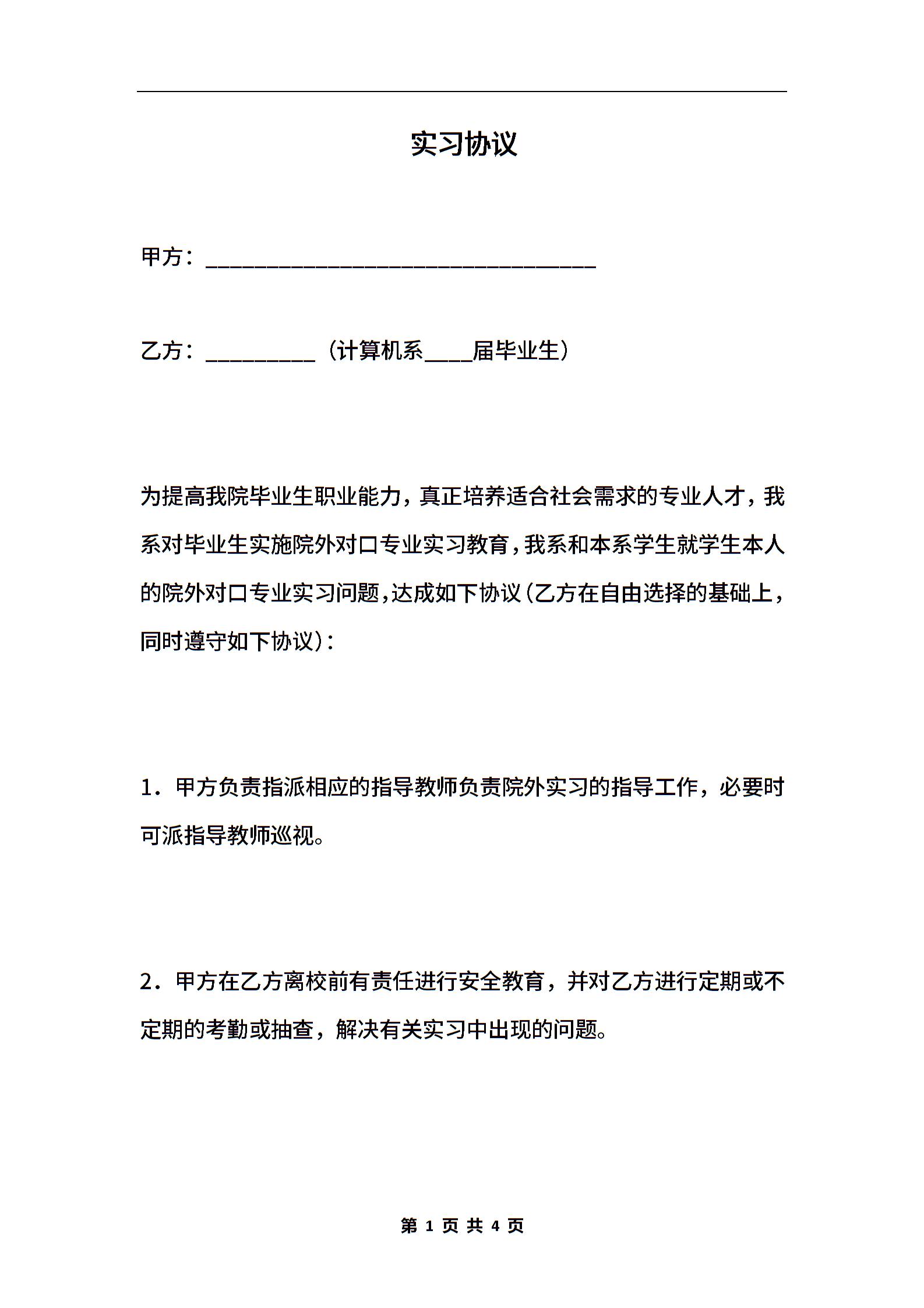 当前位置:量子办公 > 合同模板 > 实习协议 >