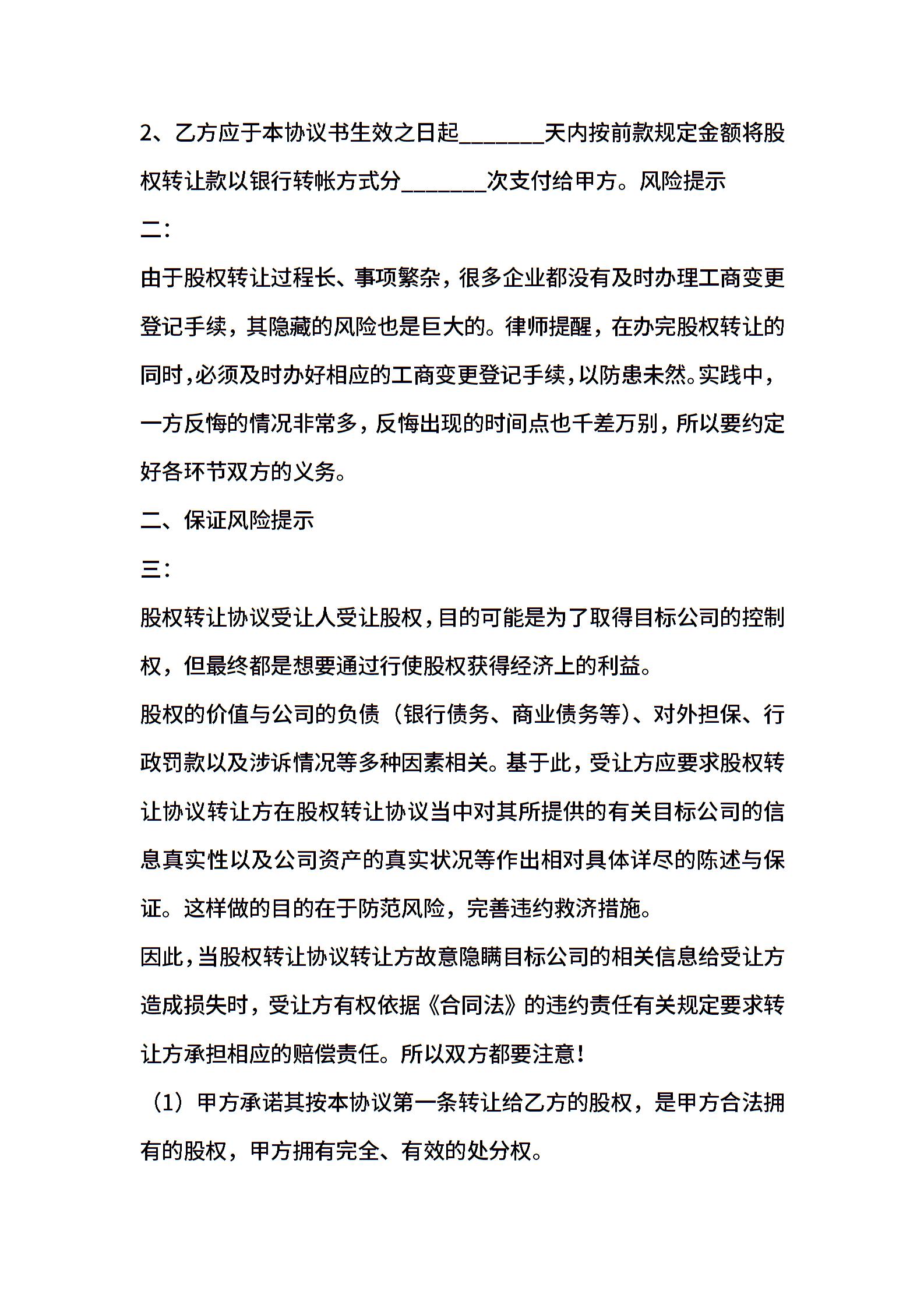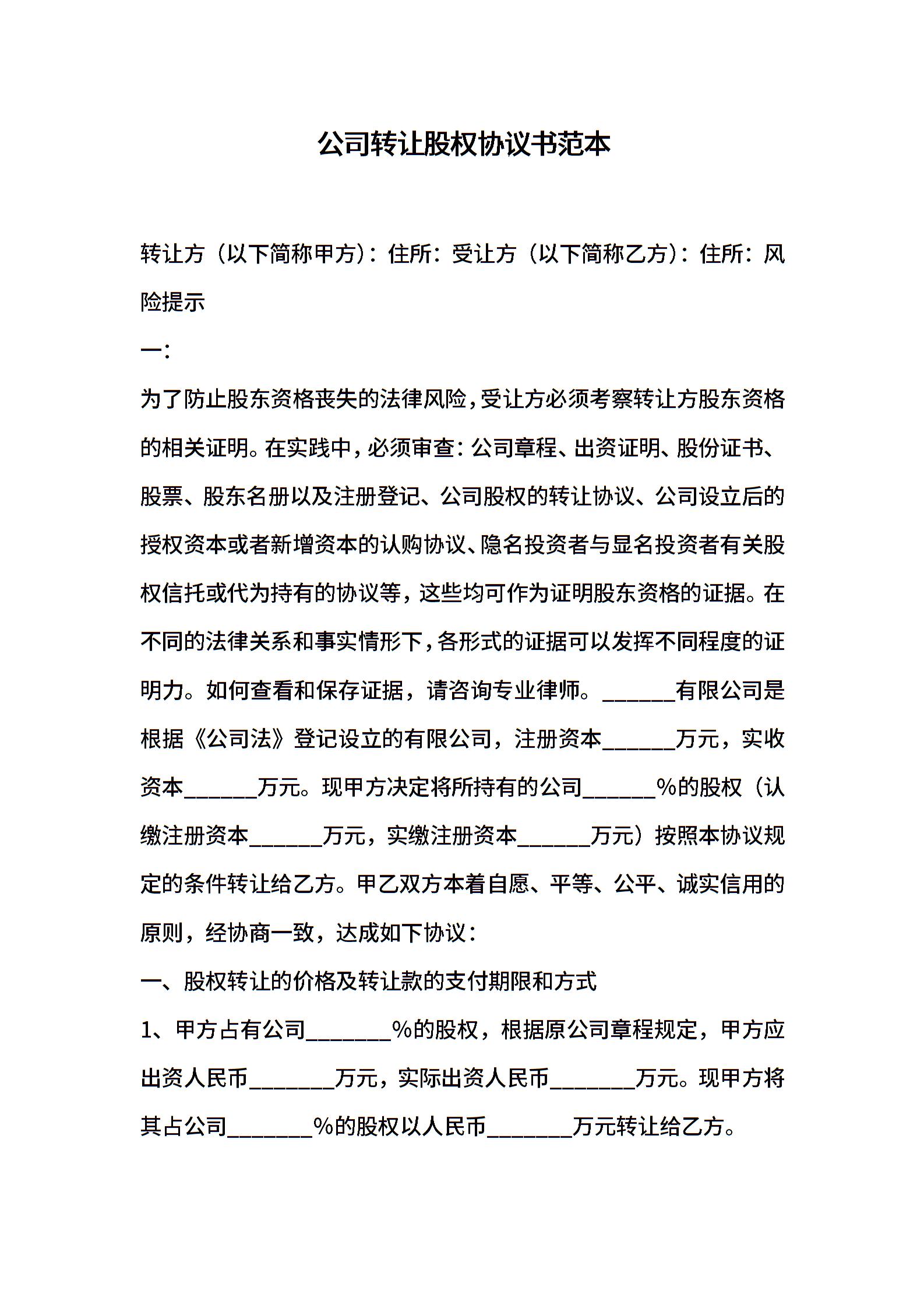 公司转让股权协议书范本