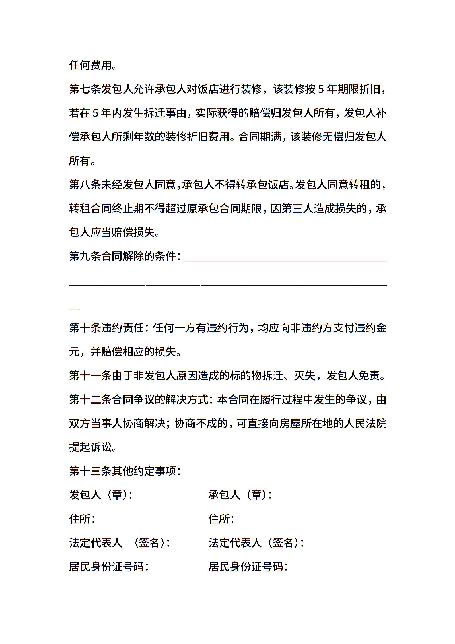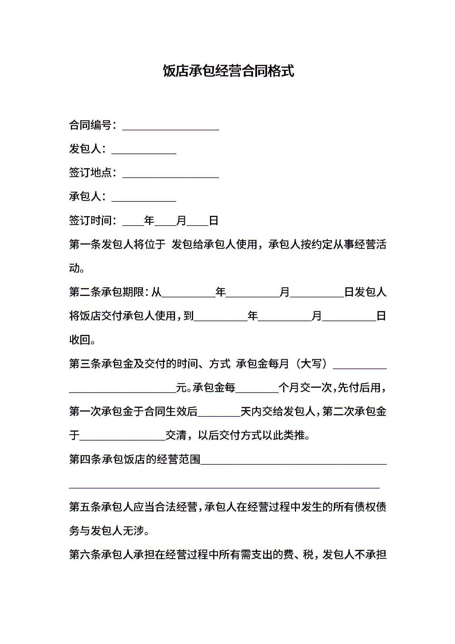 饭店承包经营合同格式