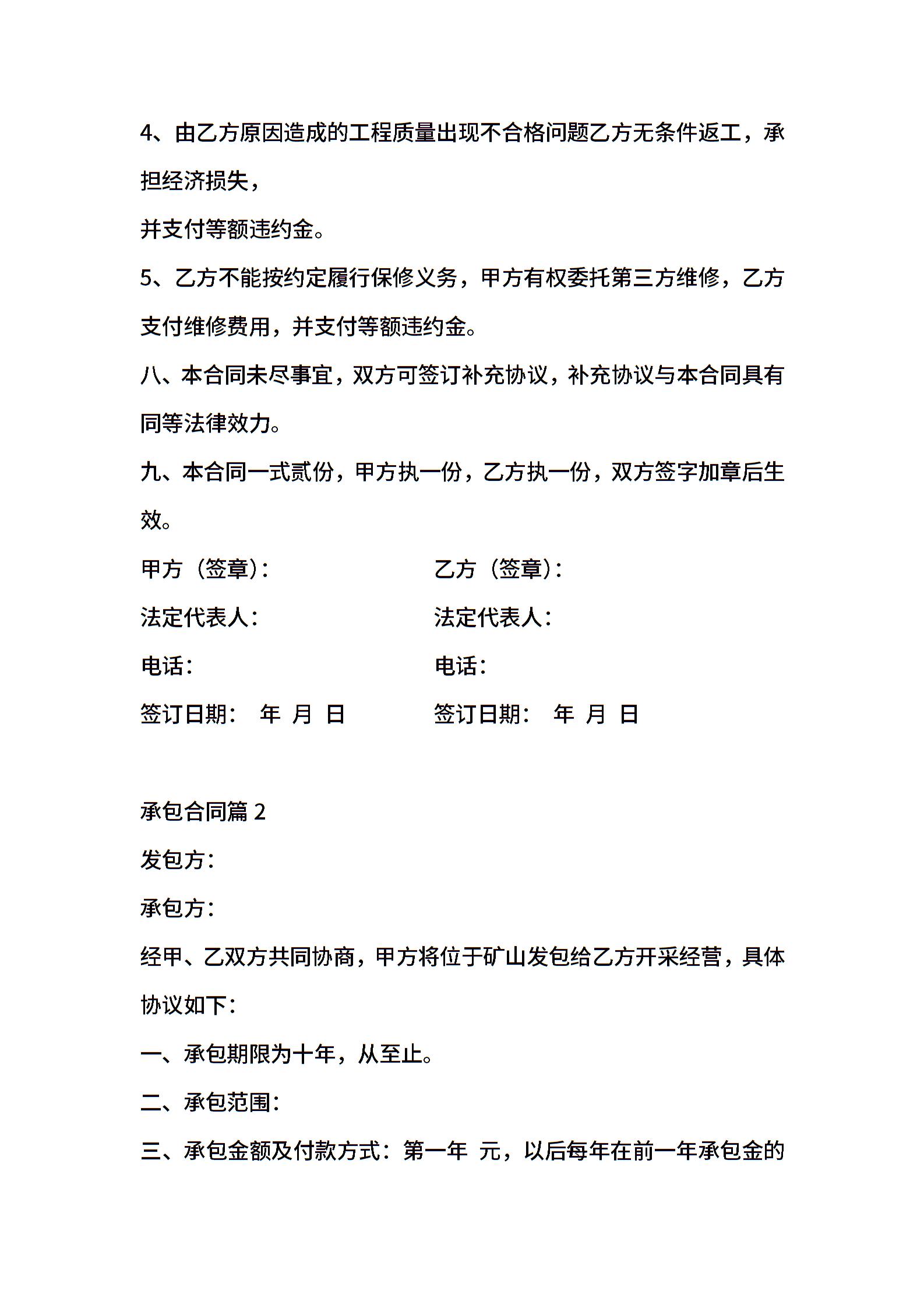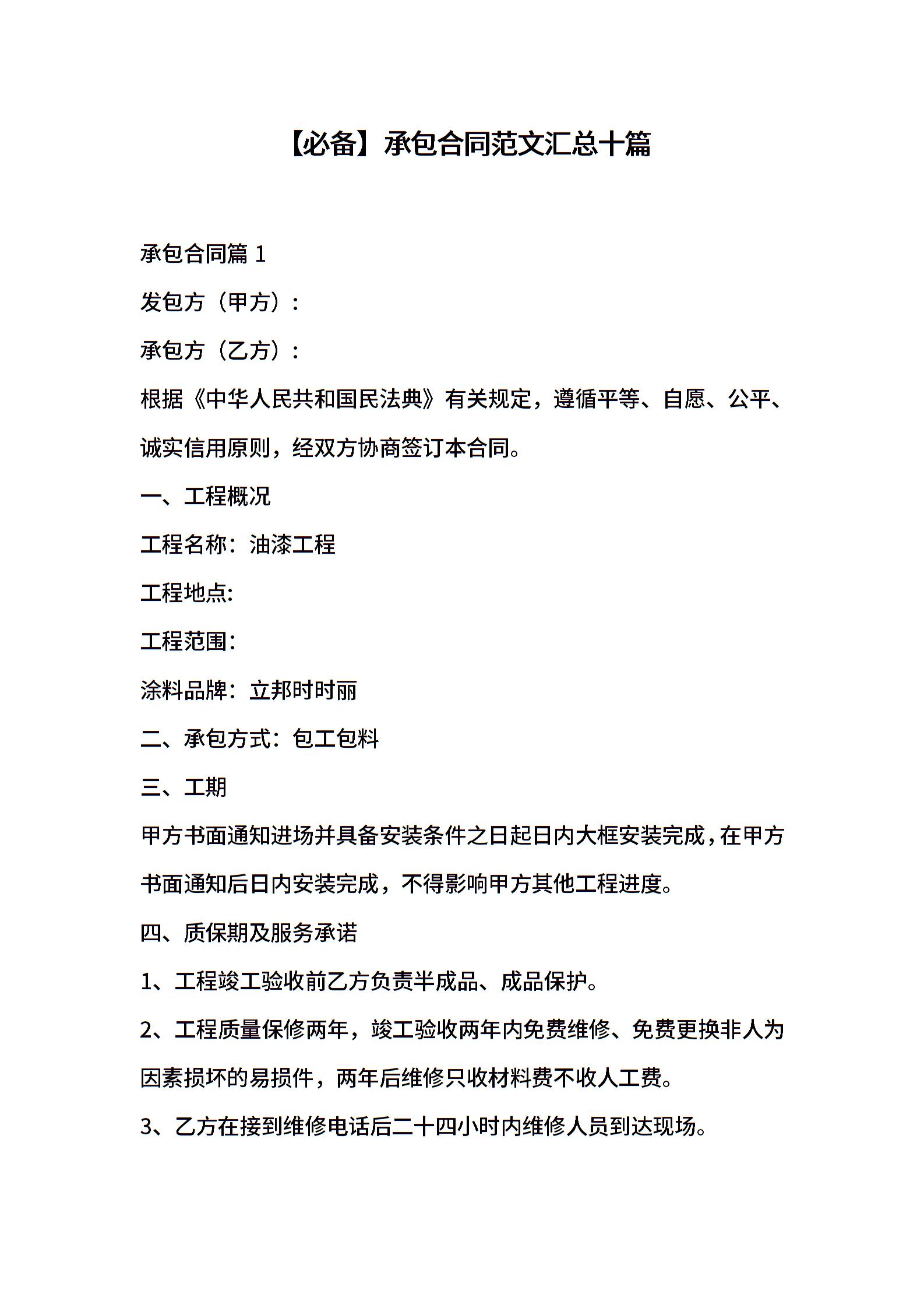 承包合同范文汇总十篇