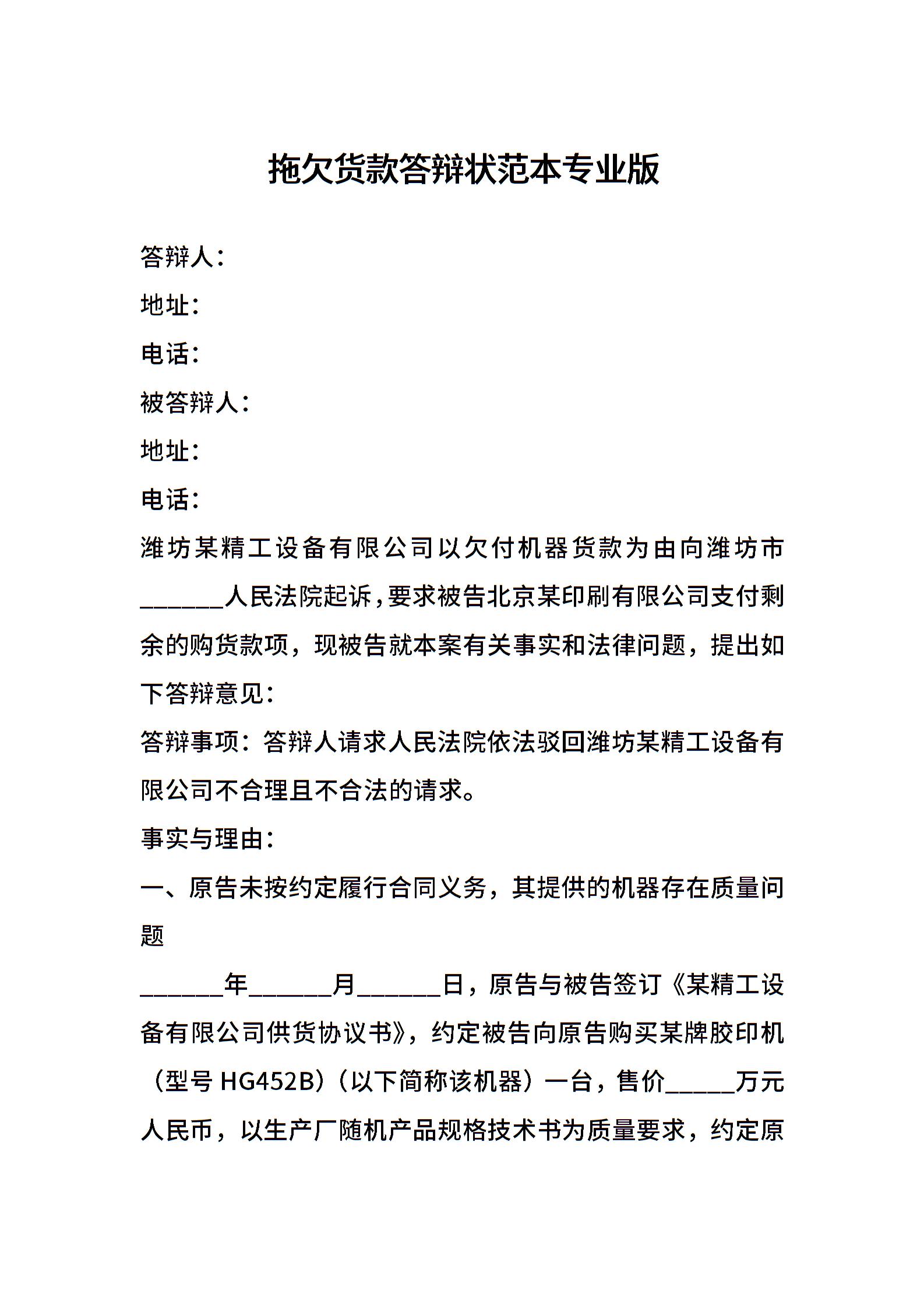 当前位置:量子办公 > 合同模板 > 答辩状 >
