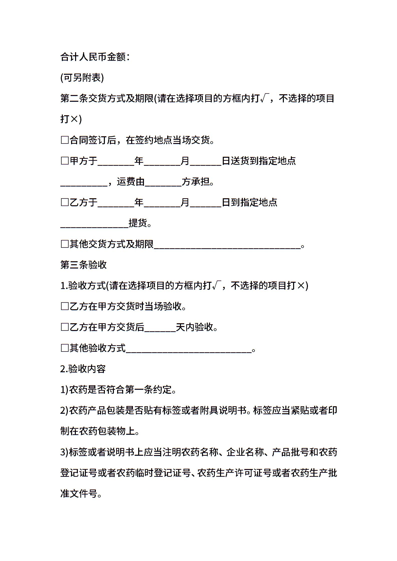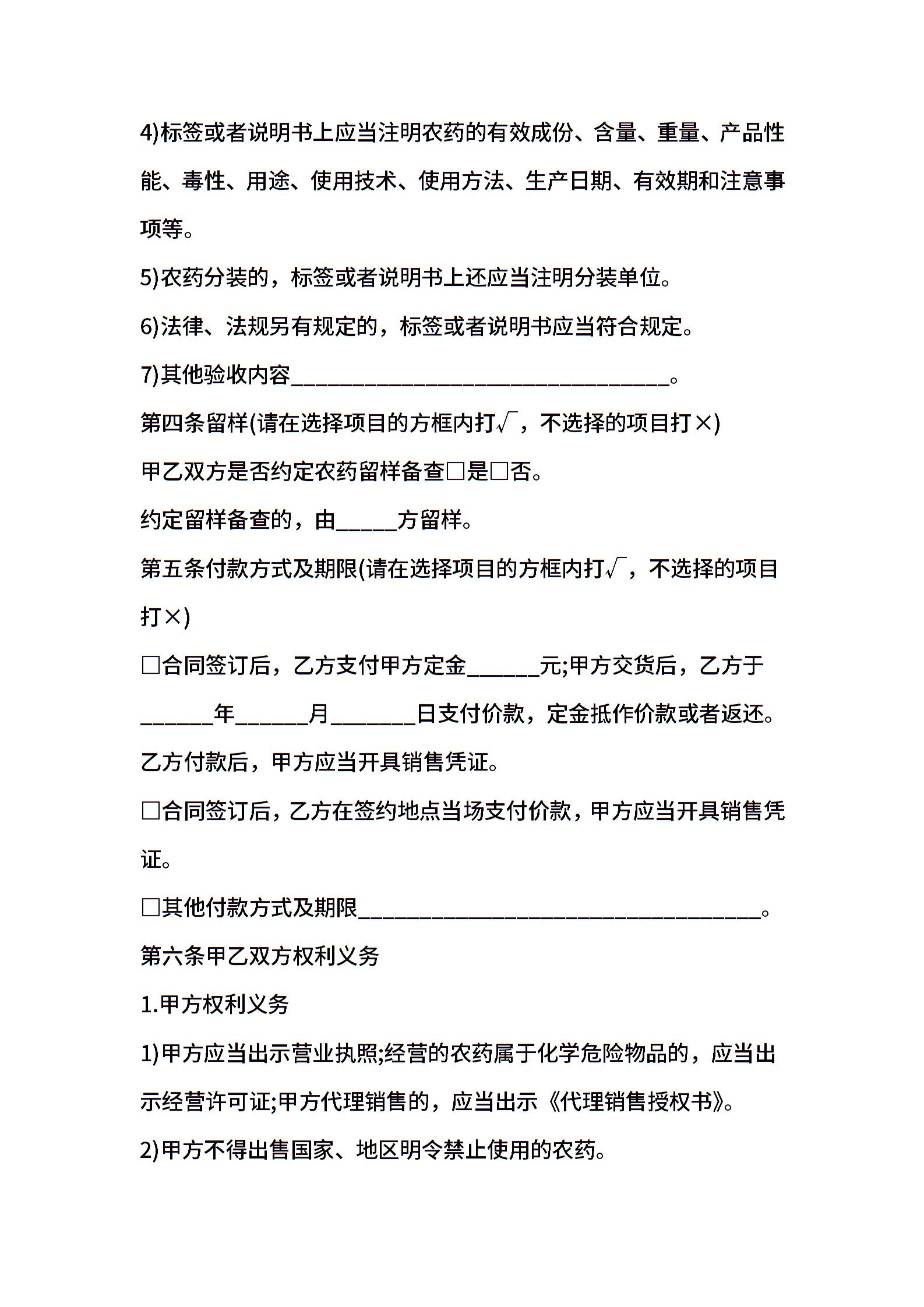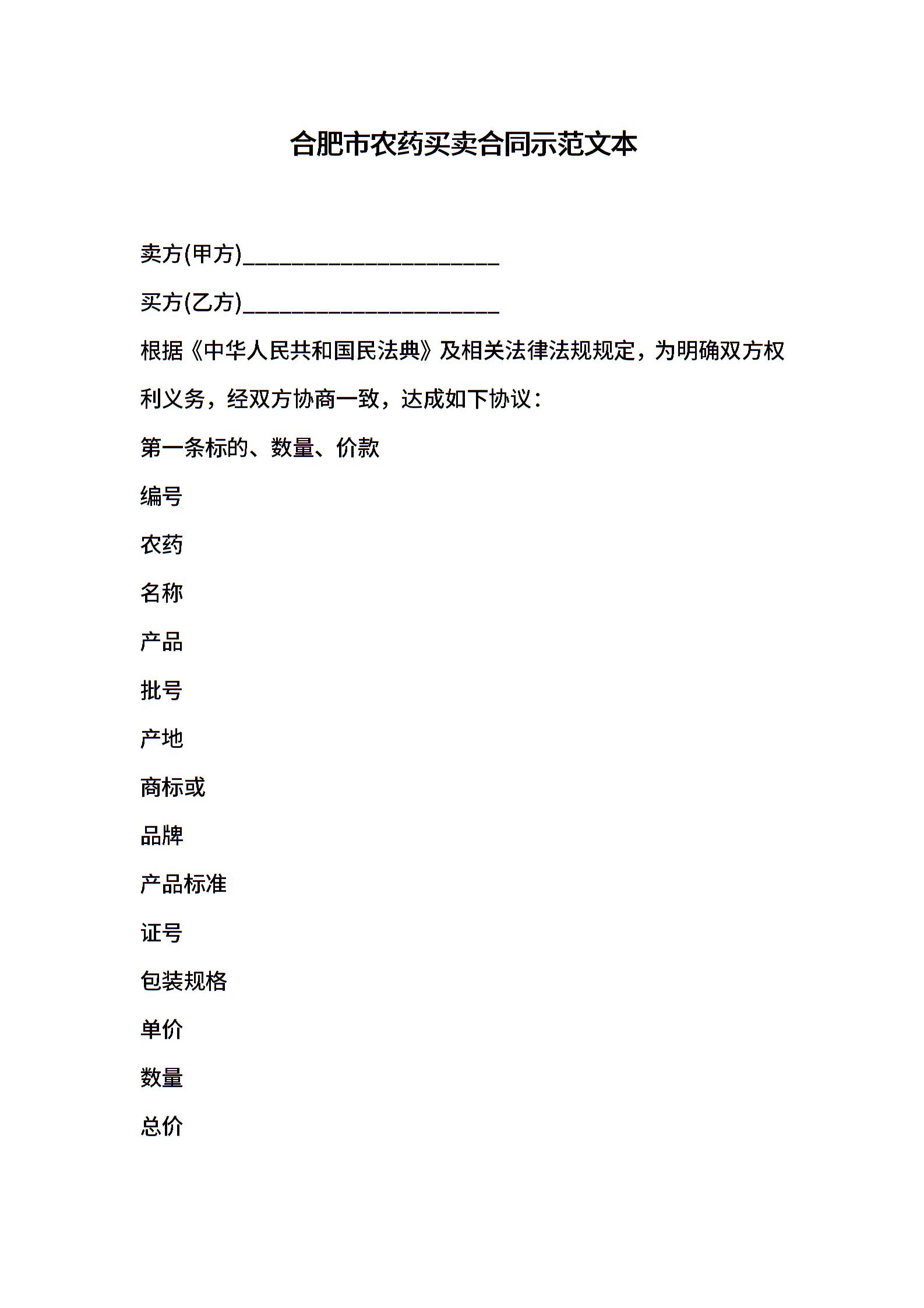 合肥市农药买卖合同示范文本
