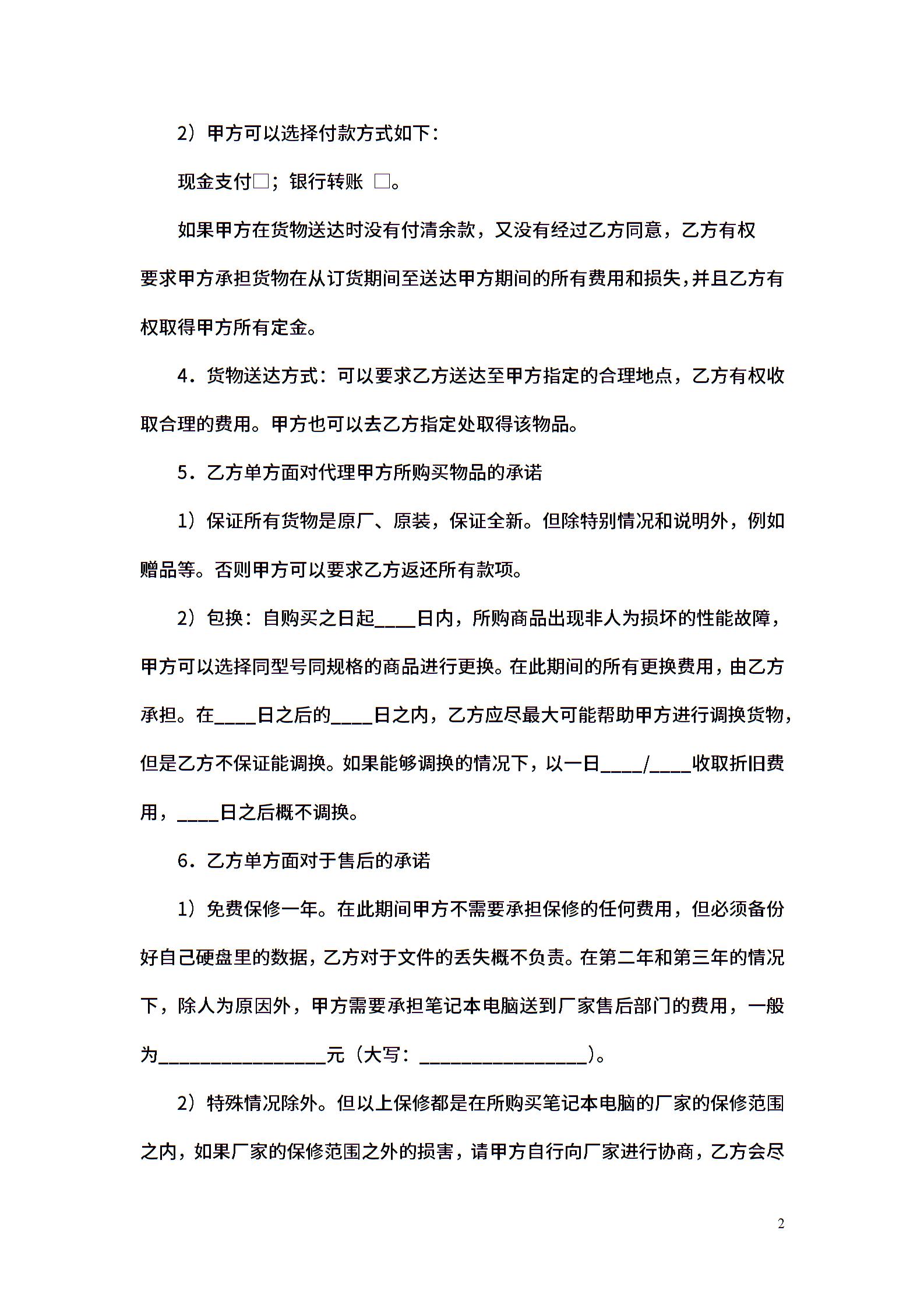 委托代理购买笔记本合同
