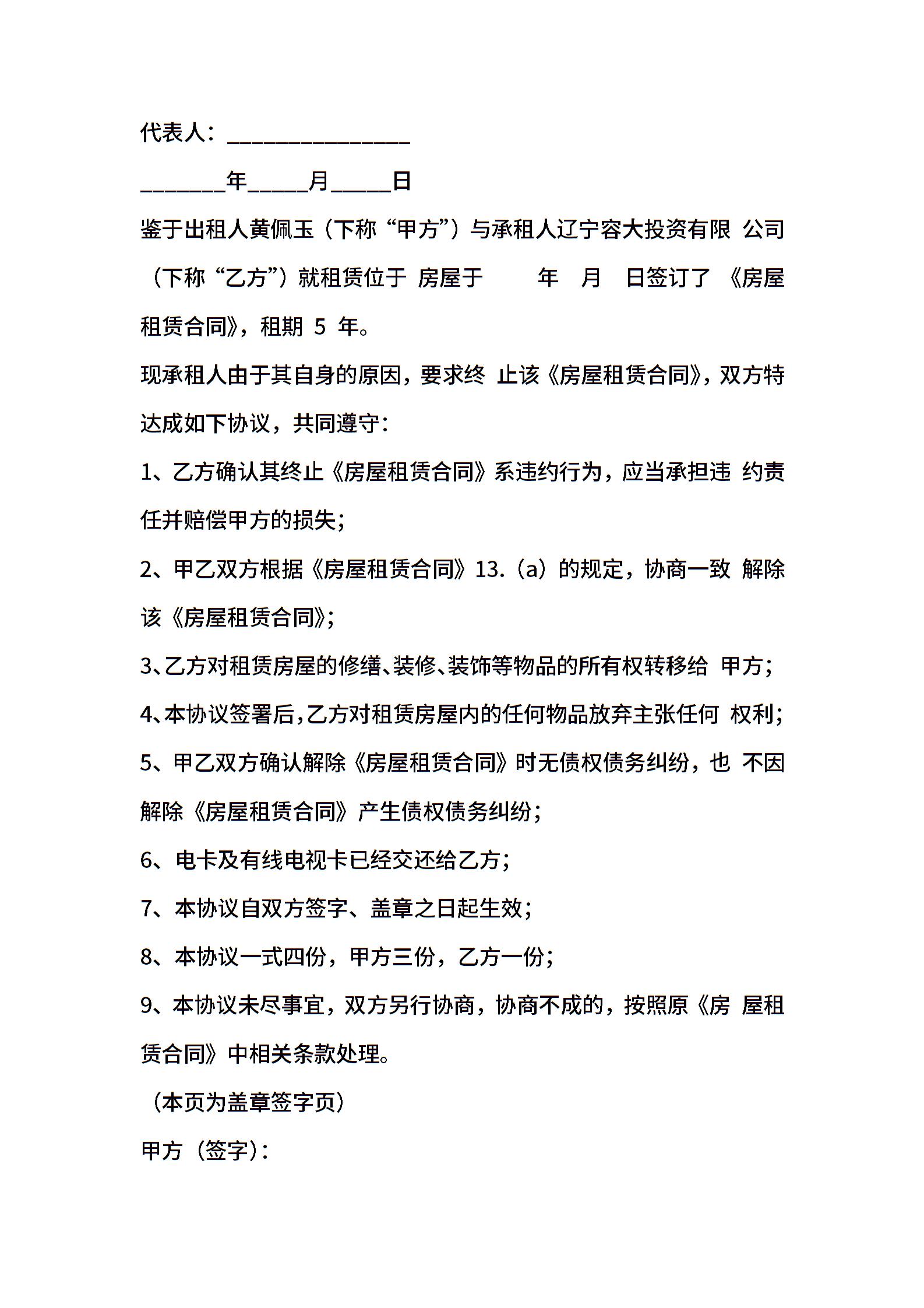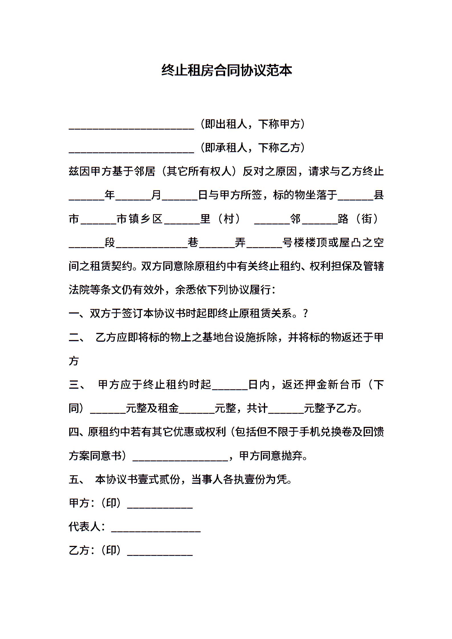 终止租房合同协议范本