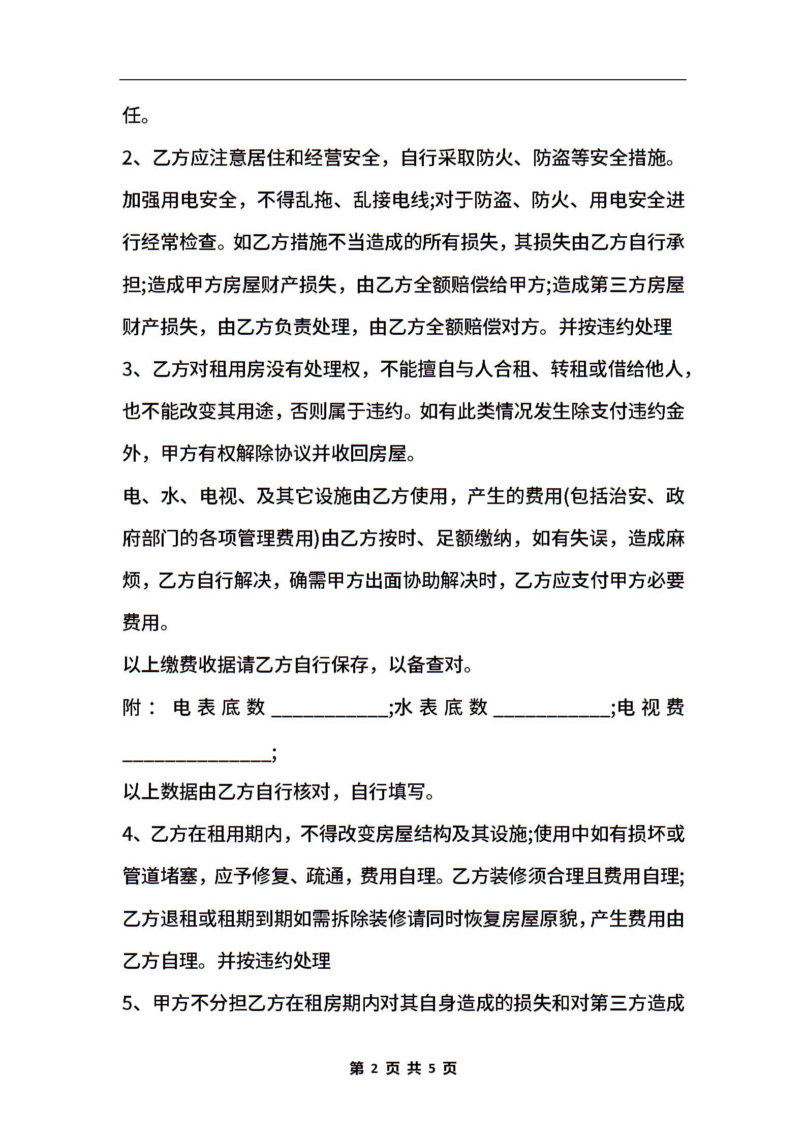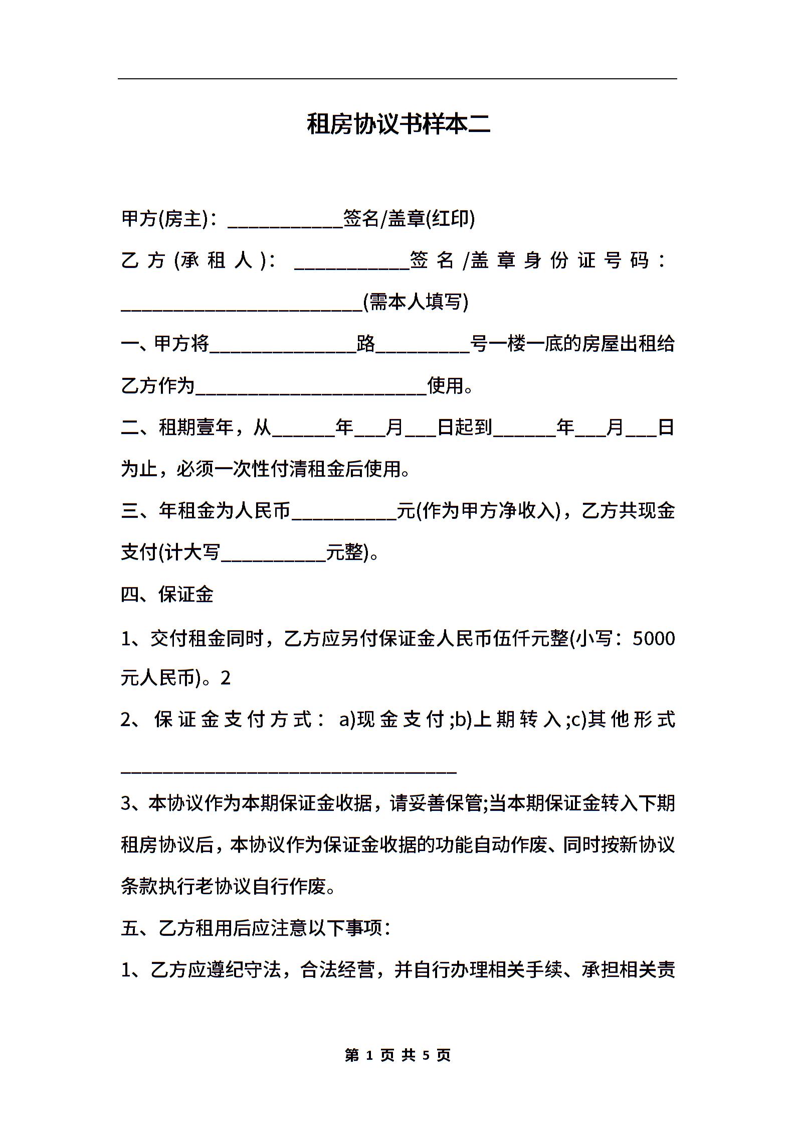 租房协议书样本二