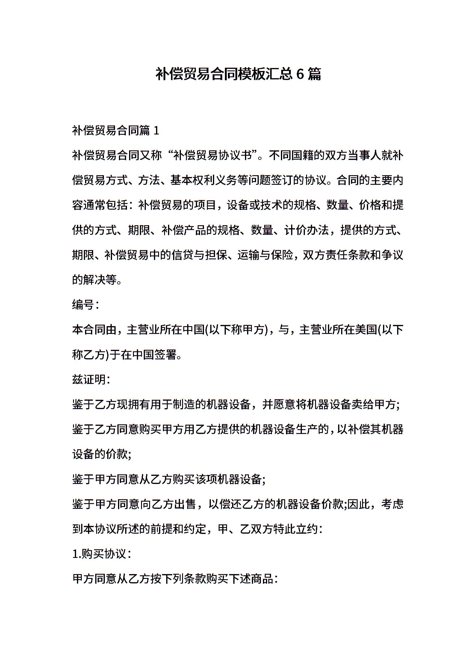 补偿贸易合同模板汇总6篇