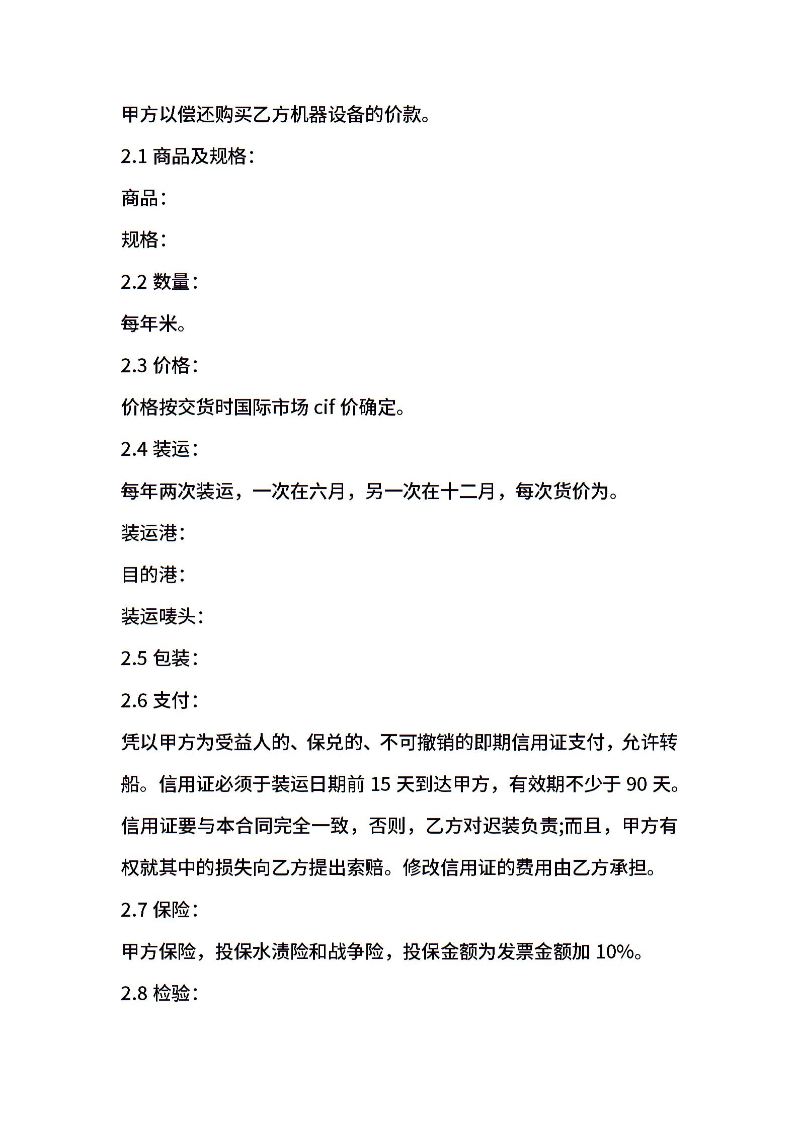 当前位置:量子办公 > 合同模板 > 贸易合同 >