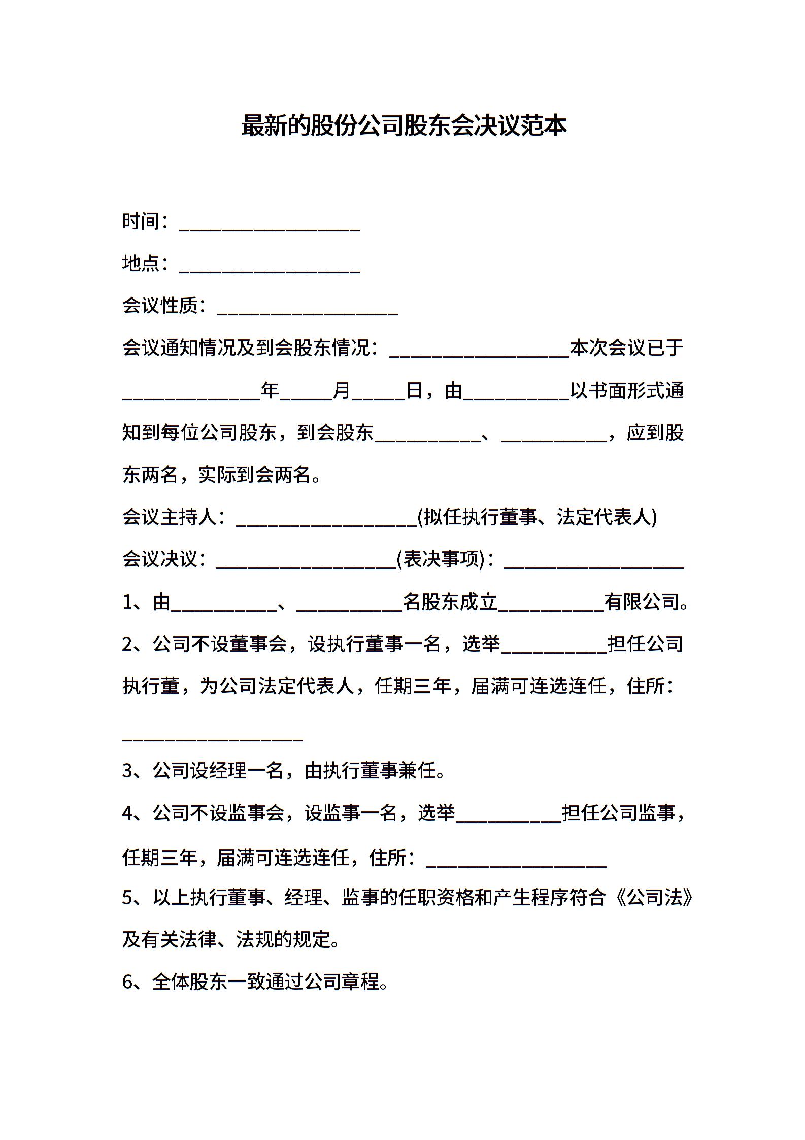 股份公司股东会决议 (3)