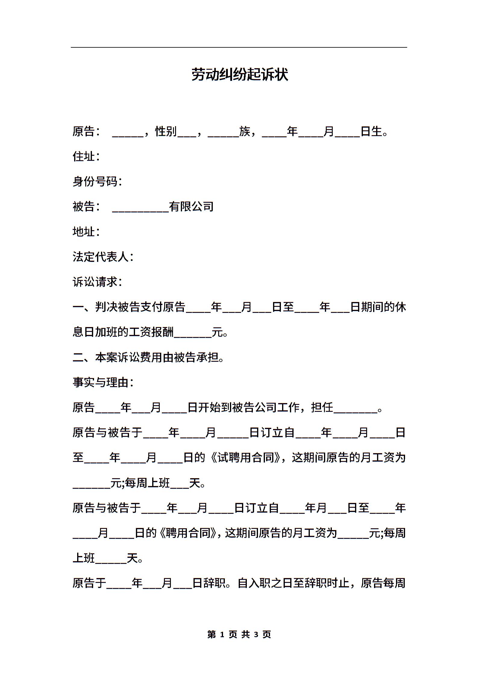 劳动纠纷起诉状