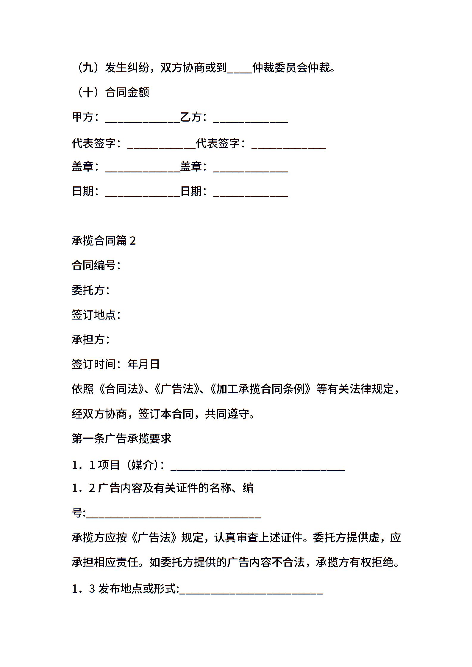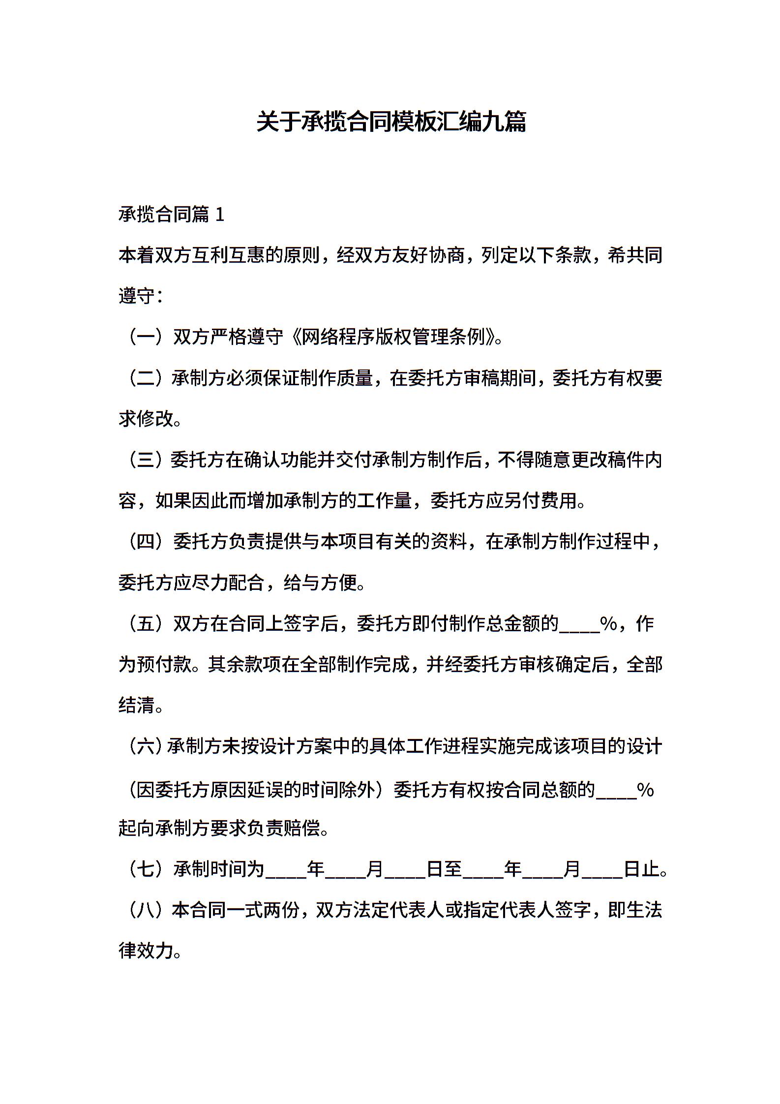 关于承揽合同模板汇编九篇