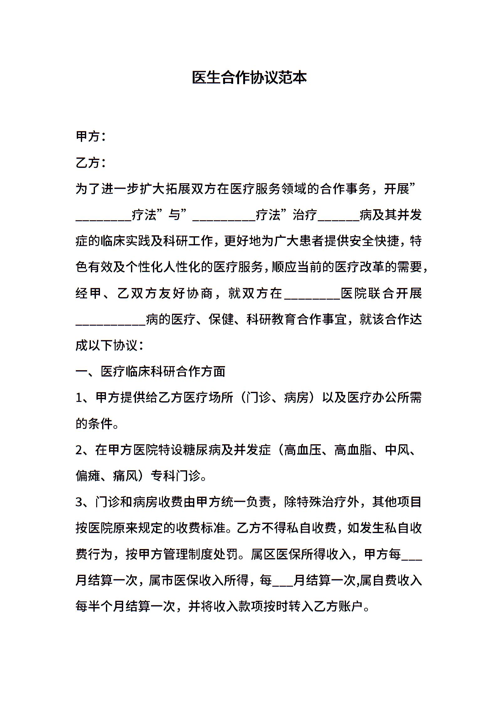 医生合作协议范本