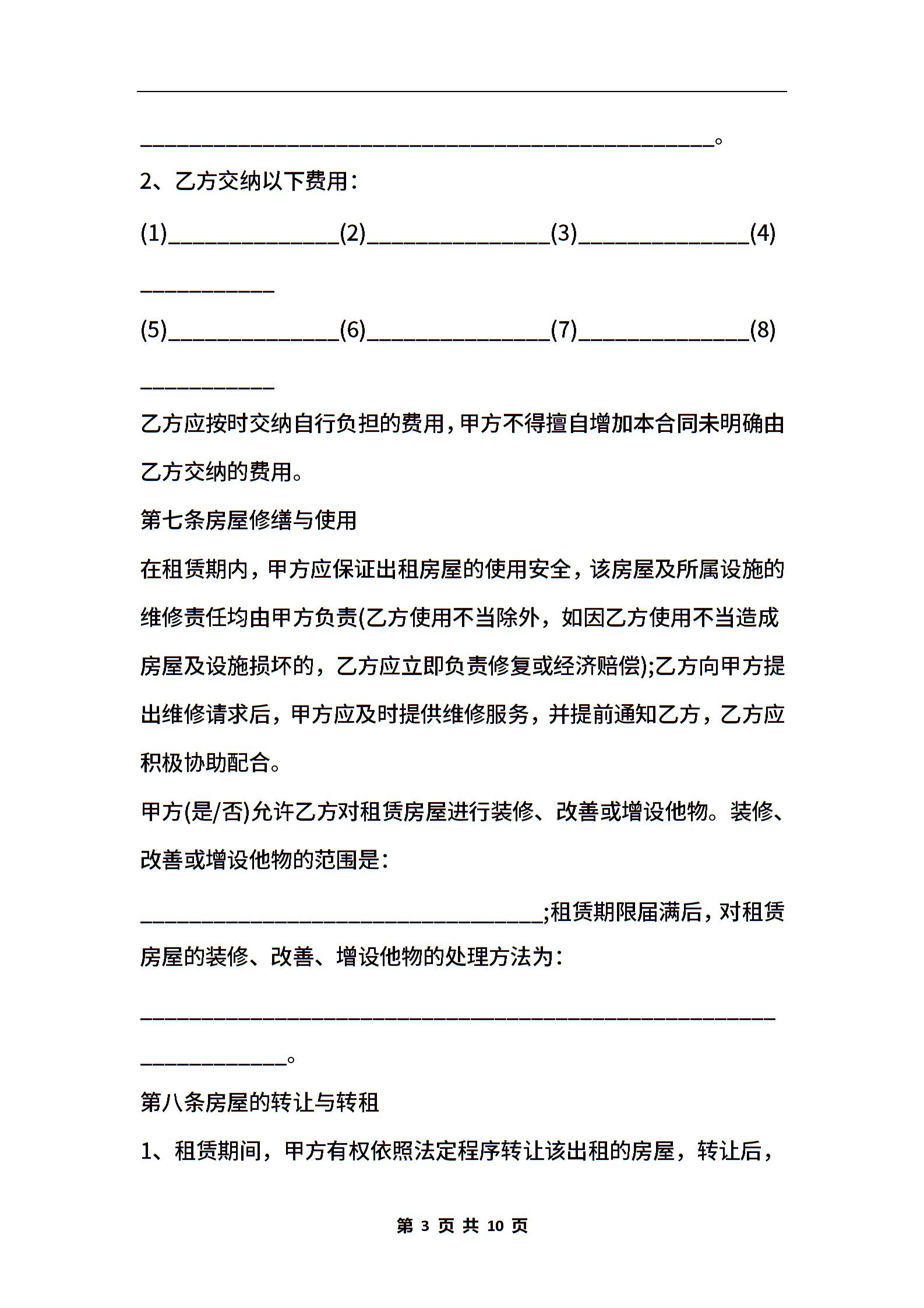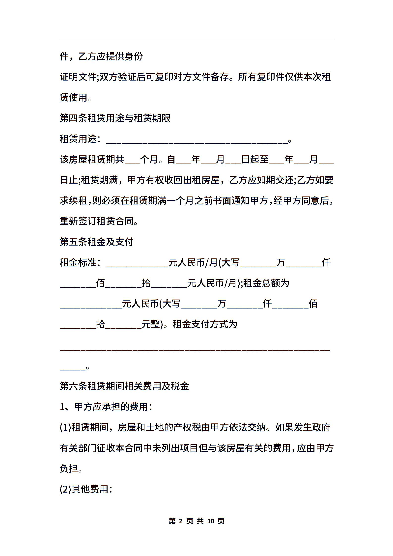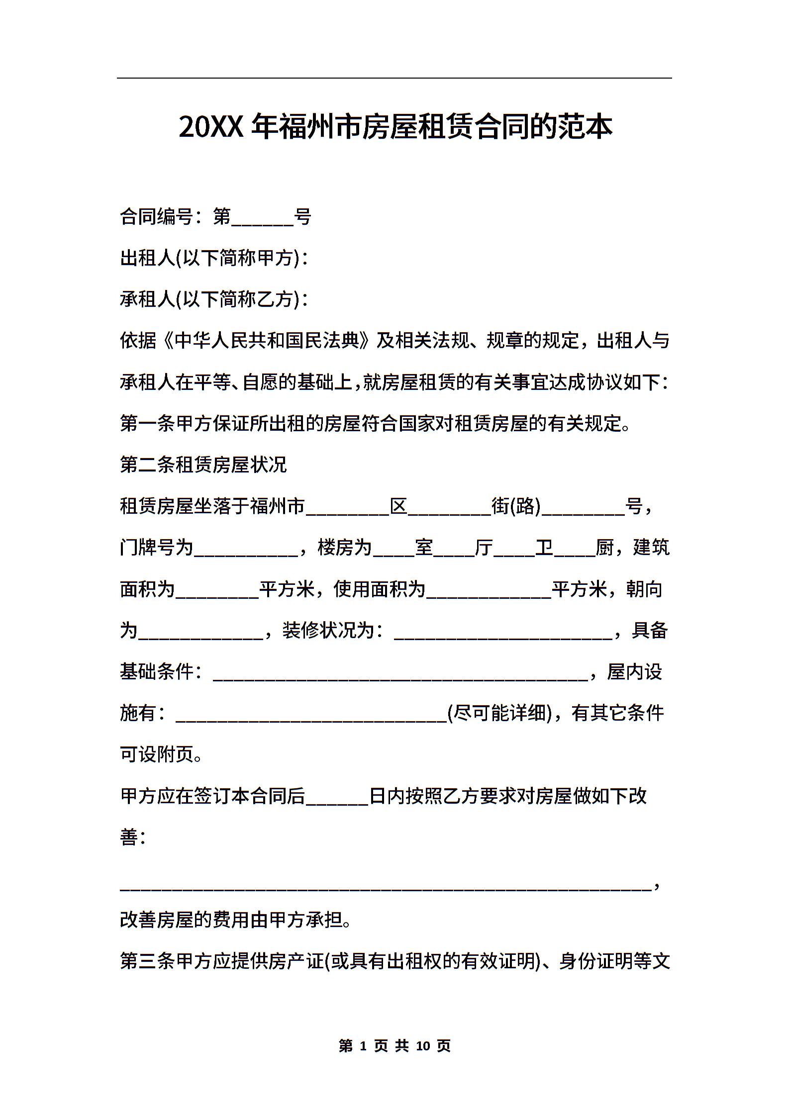 2021年福州市房屋租赁合同的范本