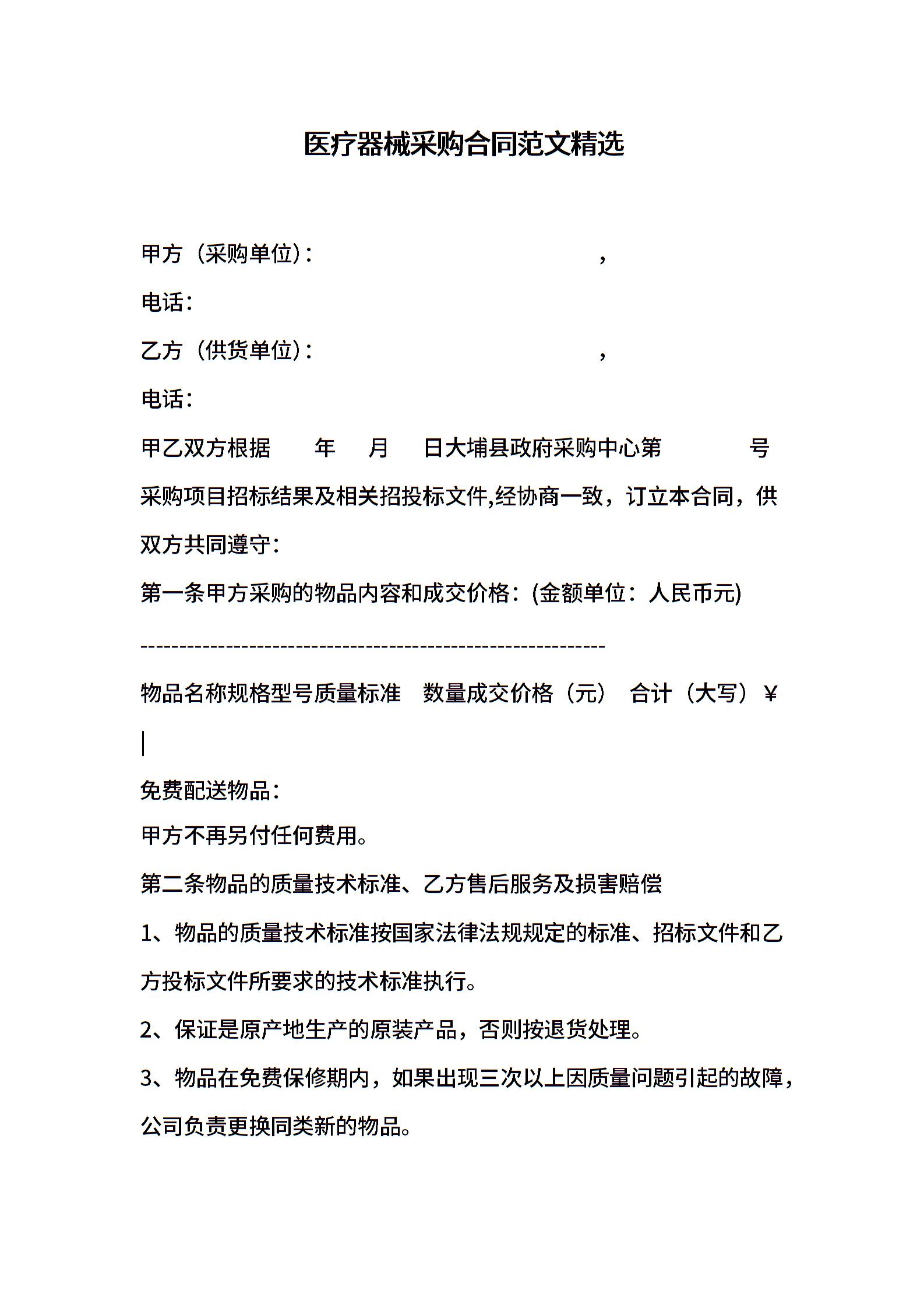 医疗器械采购合同范文精选