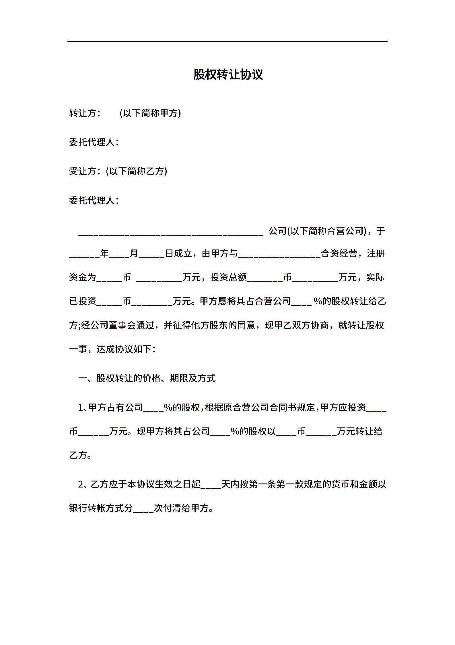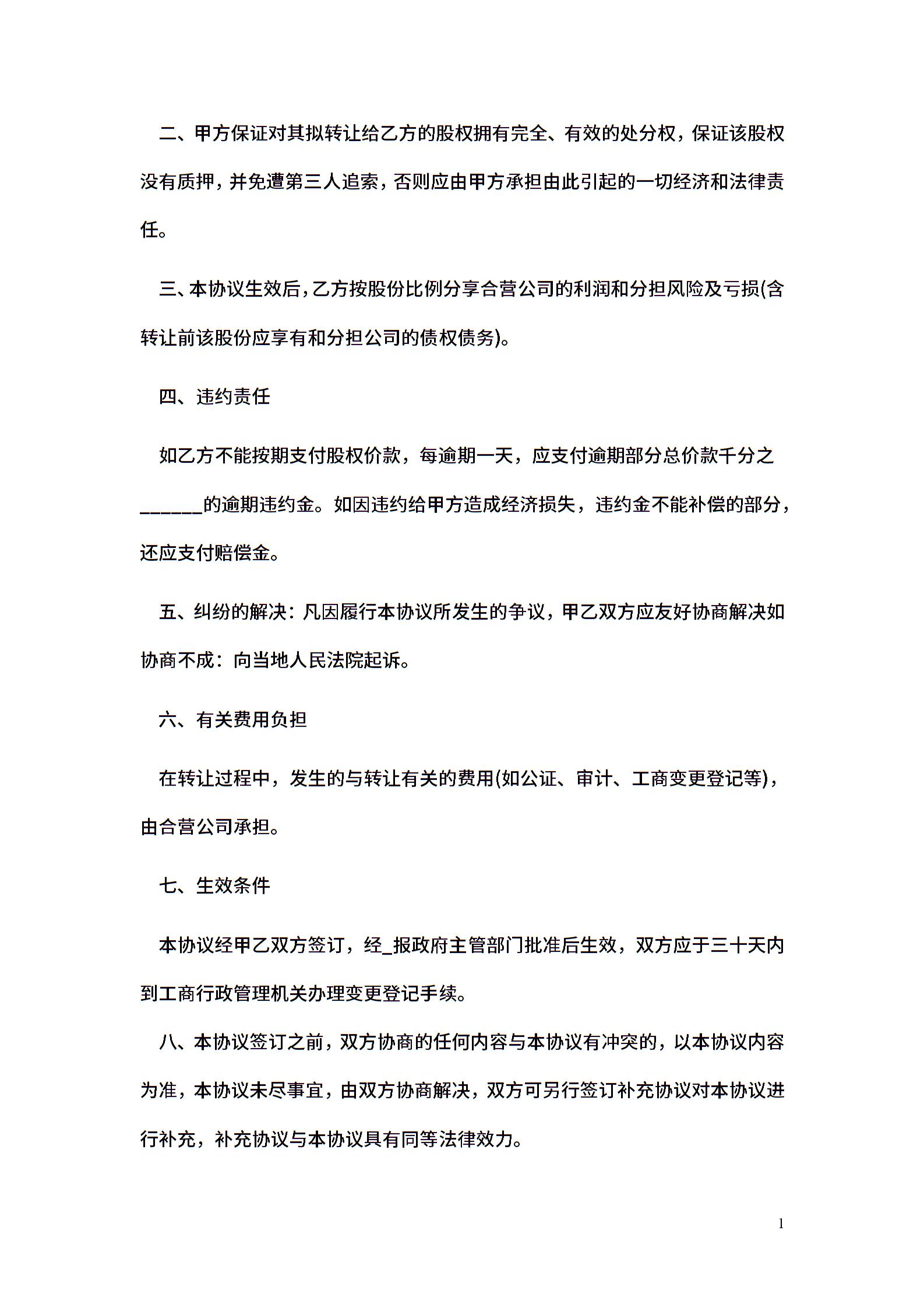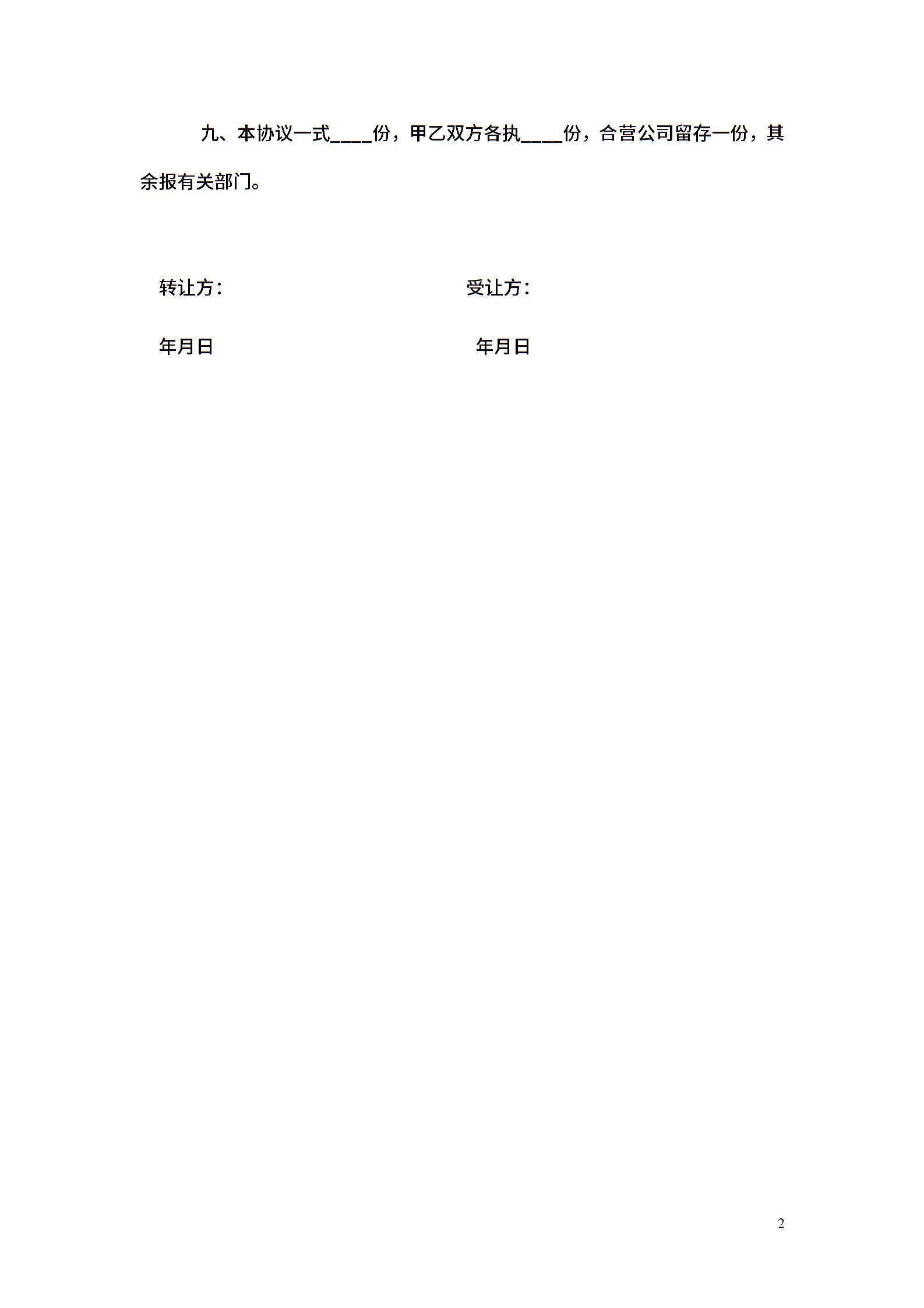 股权转让协议(合营公司)