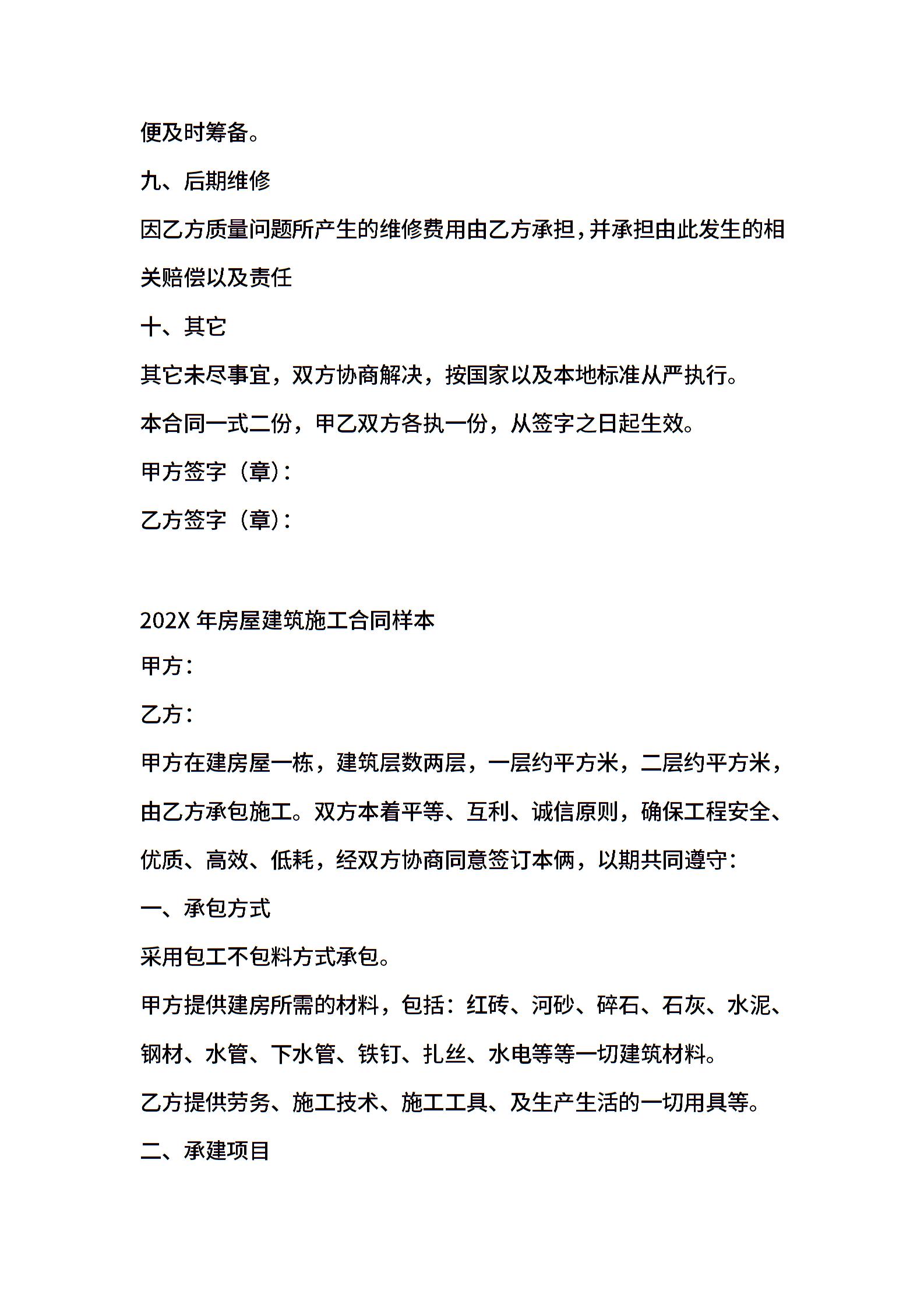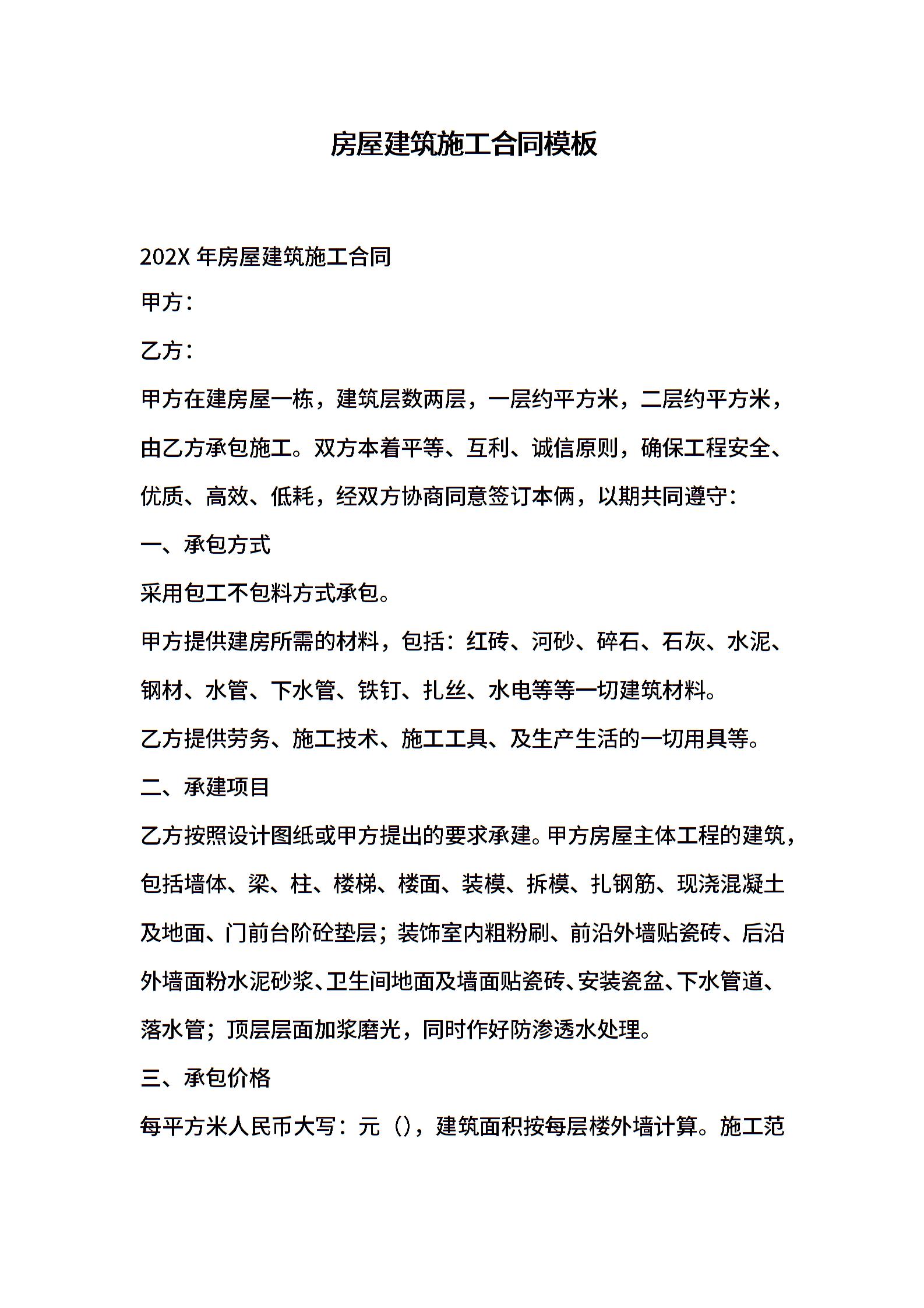 房屋建筑施工合同模板_1