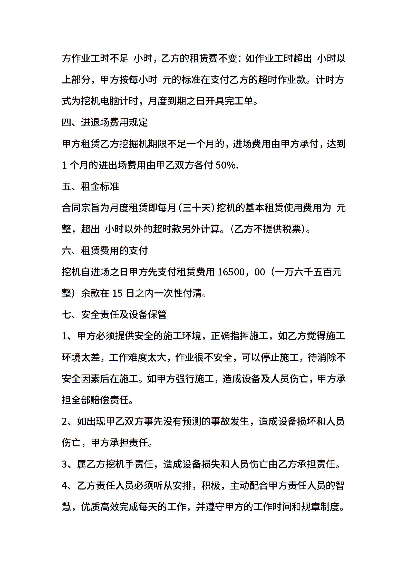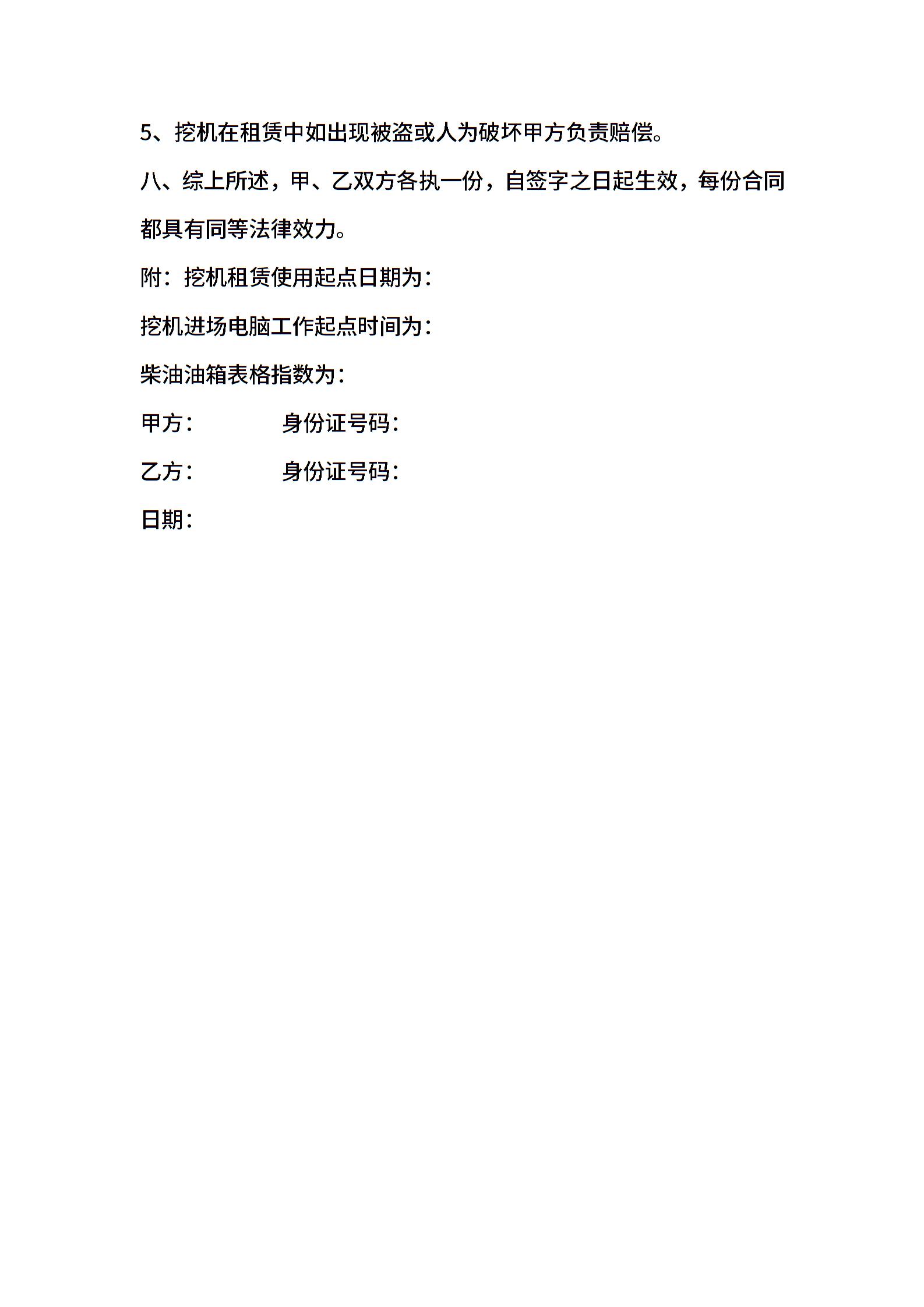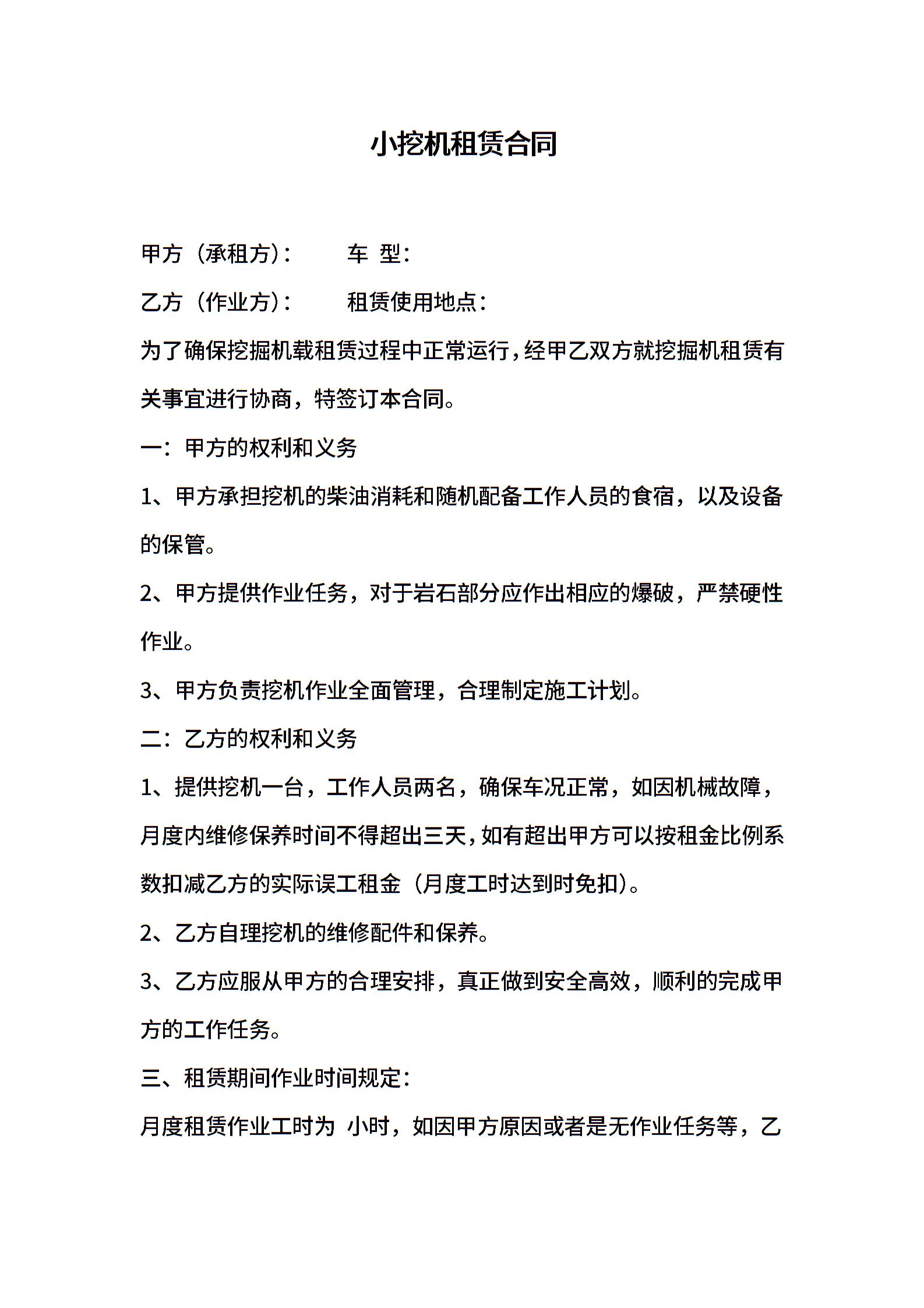小挖机租赁合同