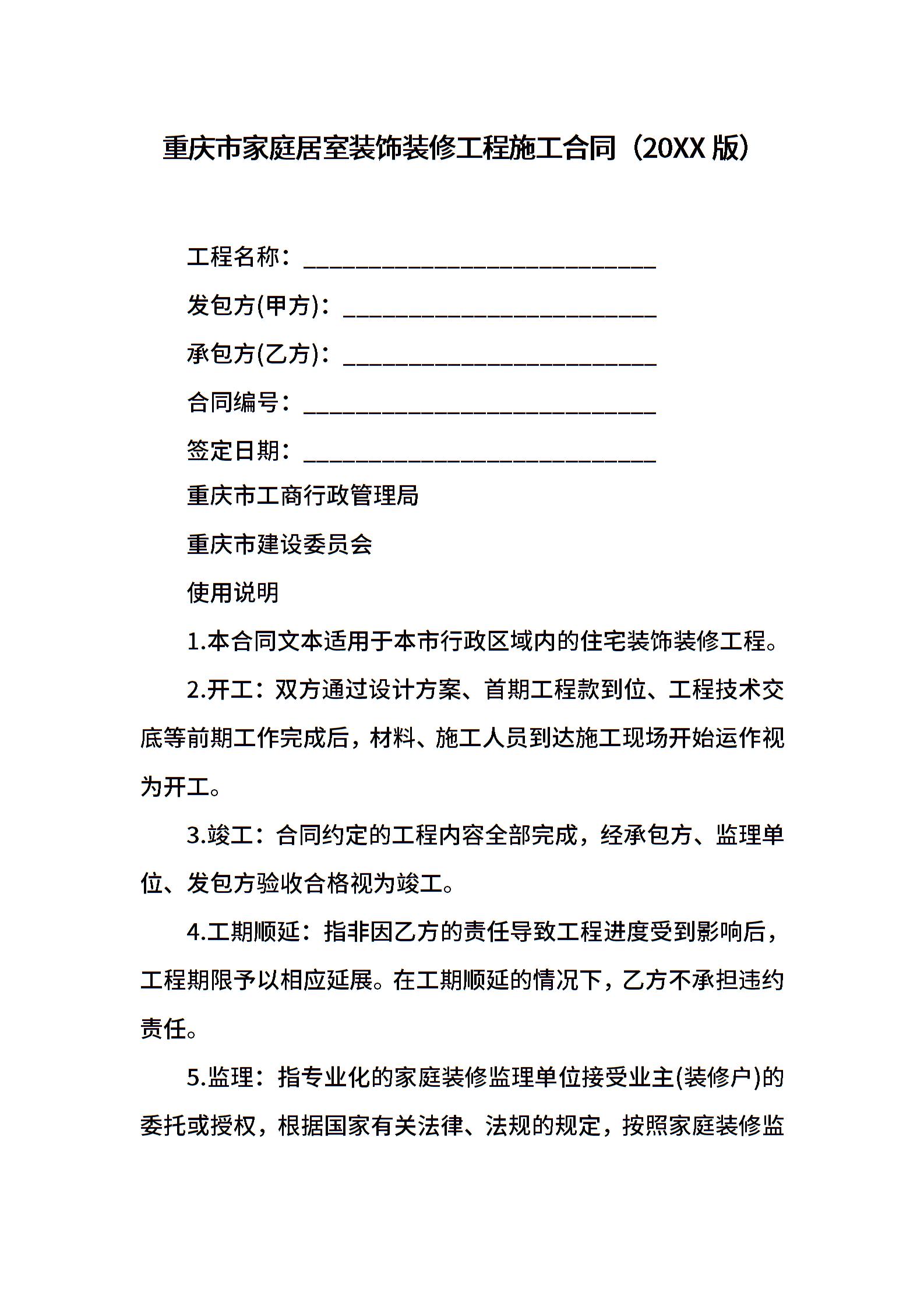 重庆市家庭居室装饰装修工程施工合同(2021版)