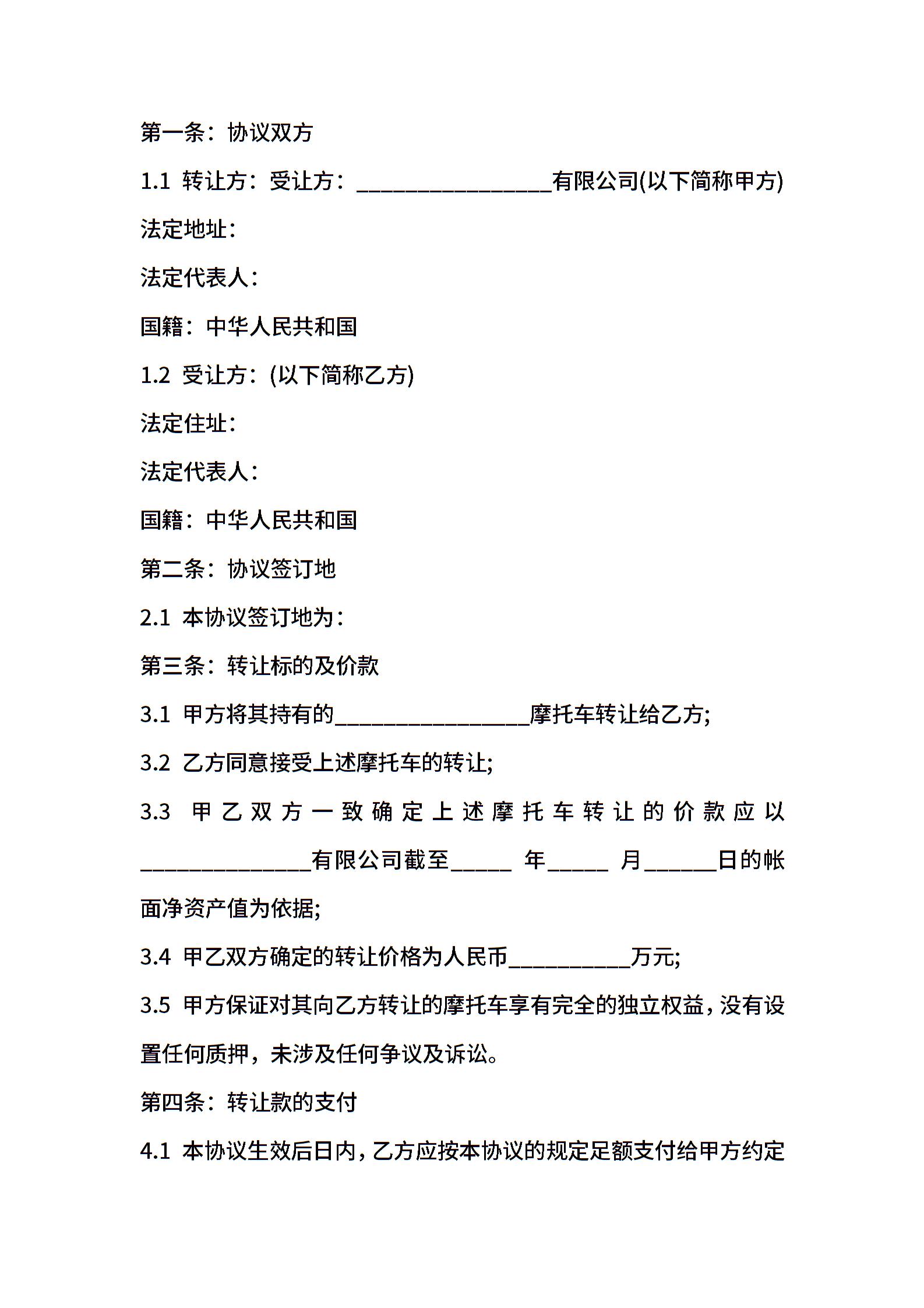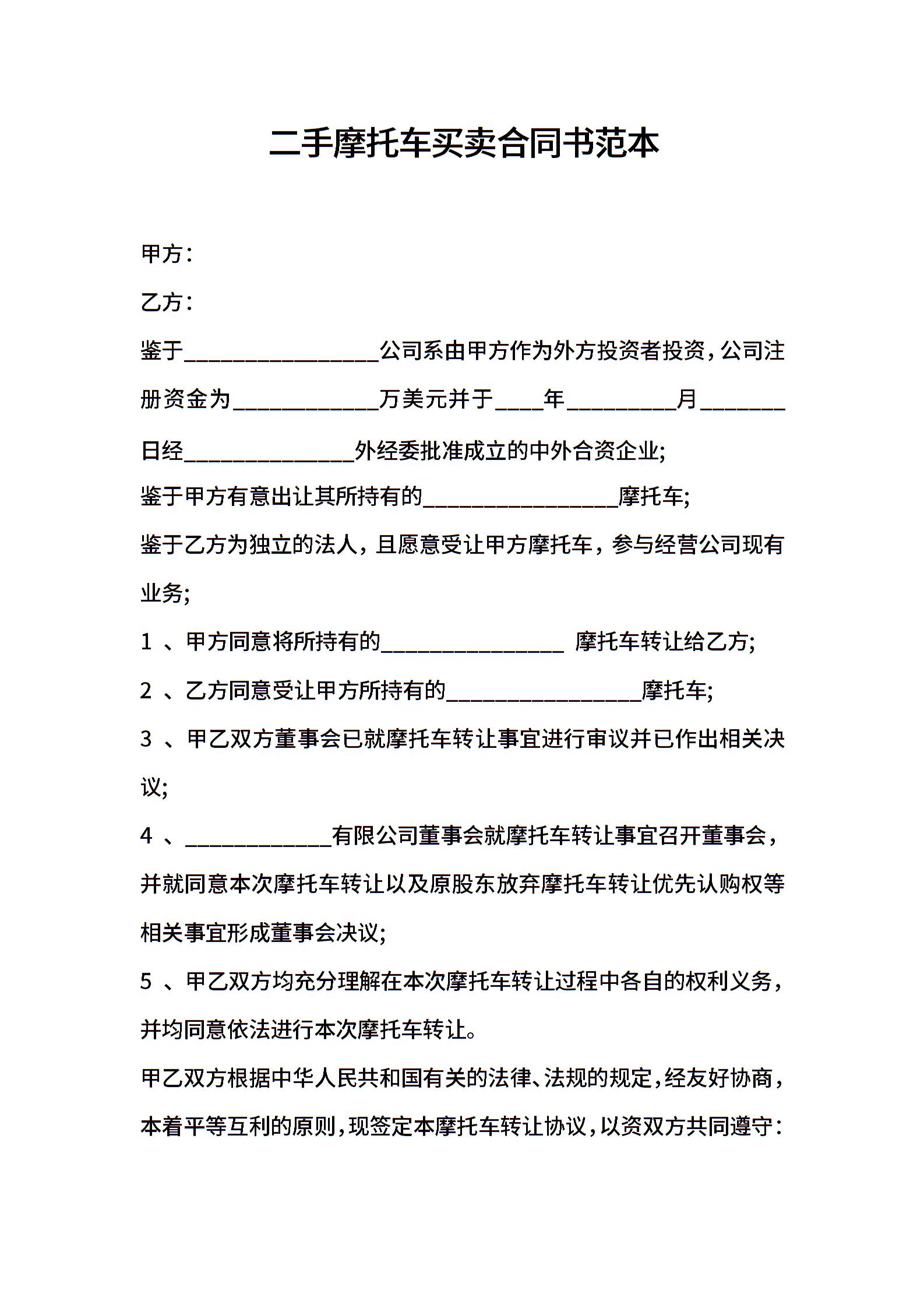 二手摩托车买卖合同书范本