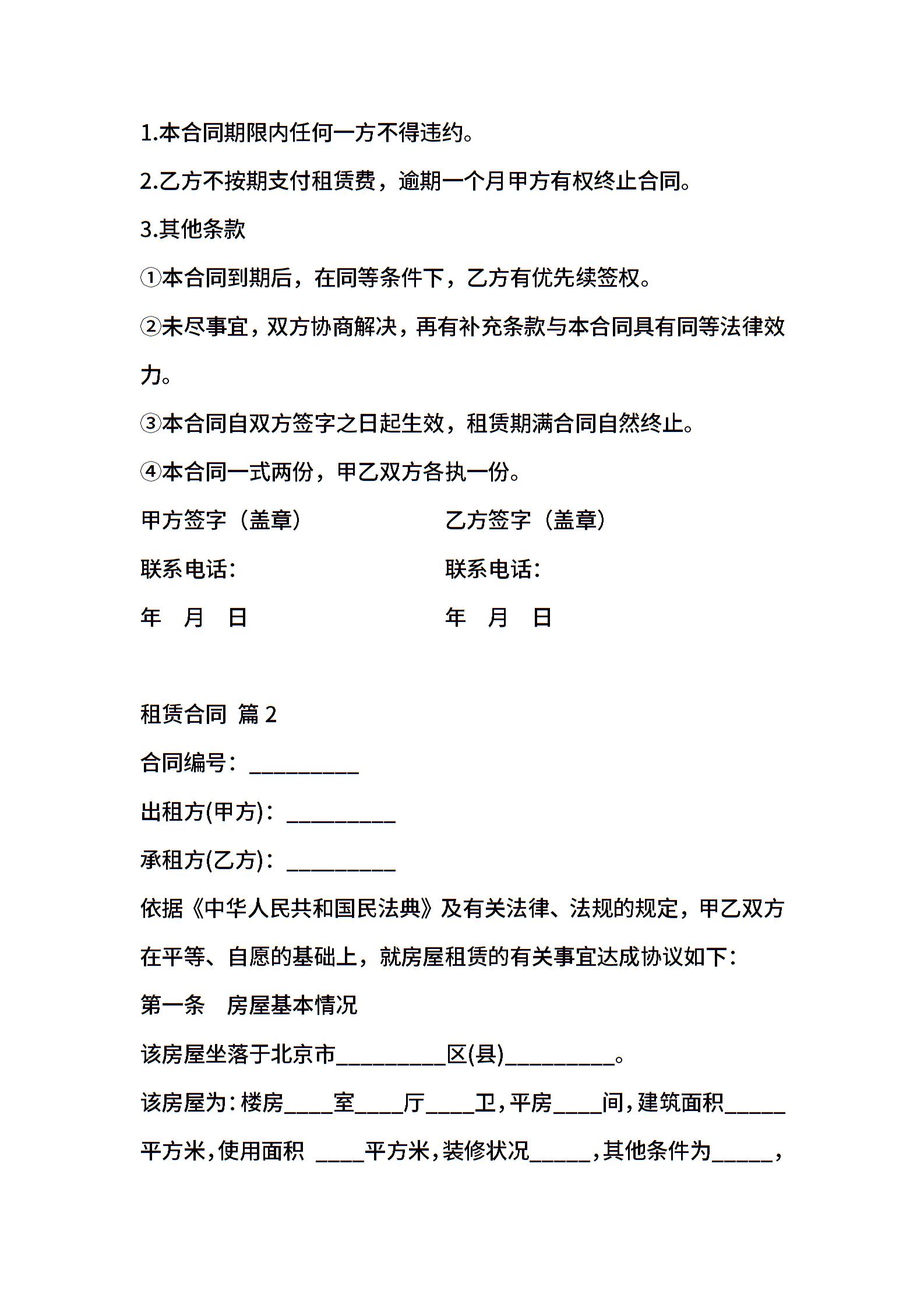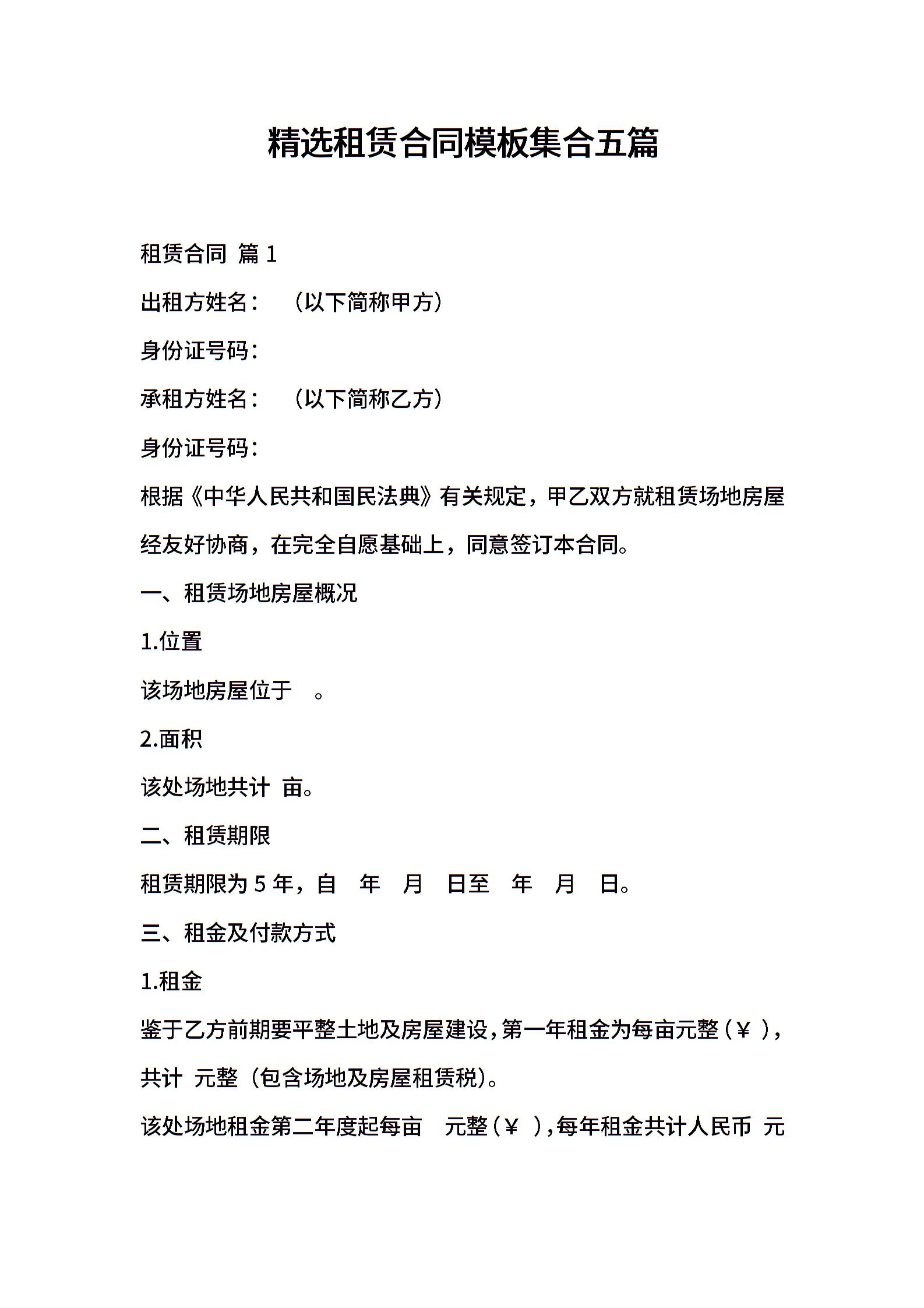 精选租赁合同模板集合五篇