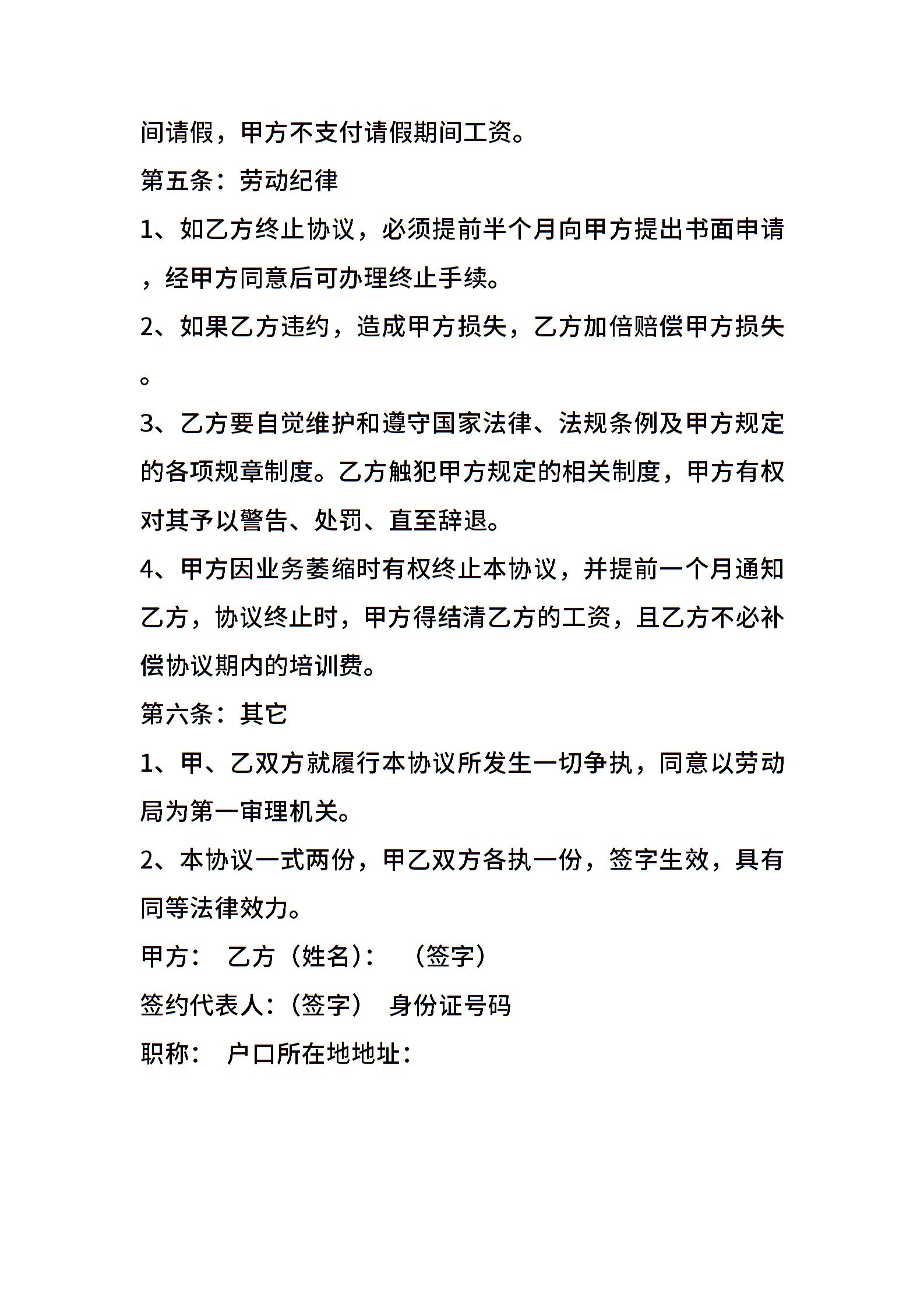 • 分类 聘用合同