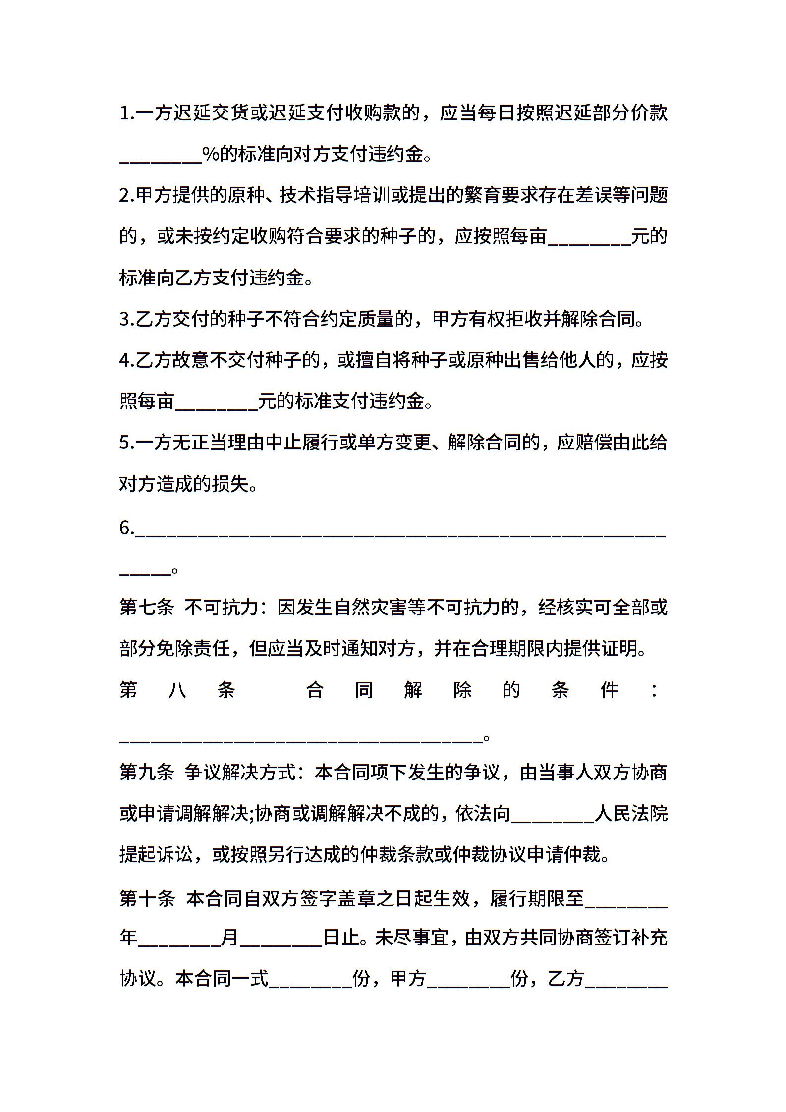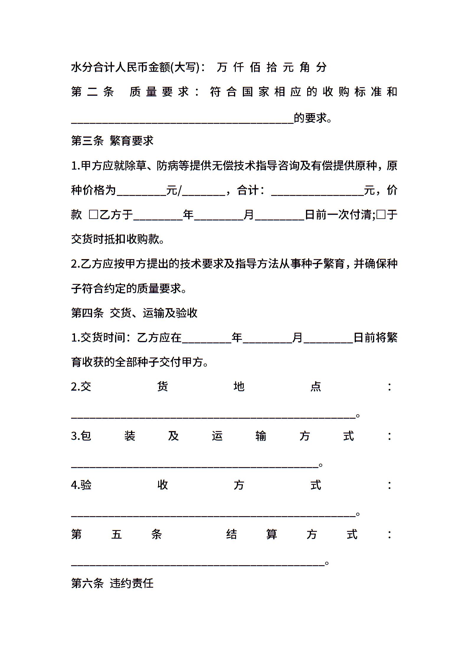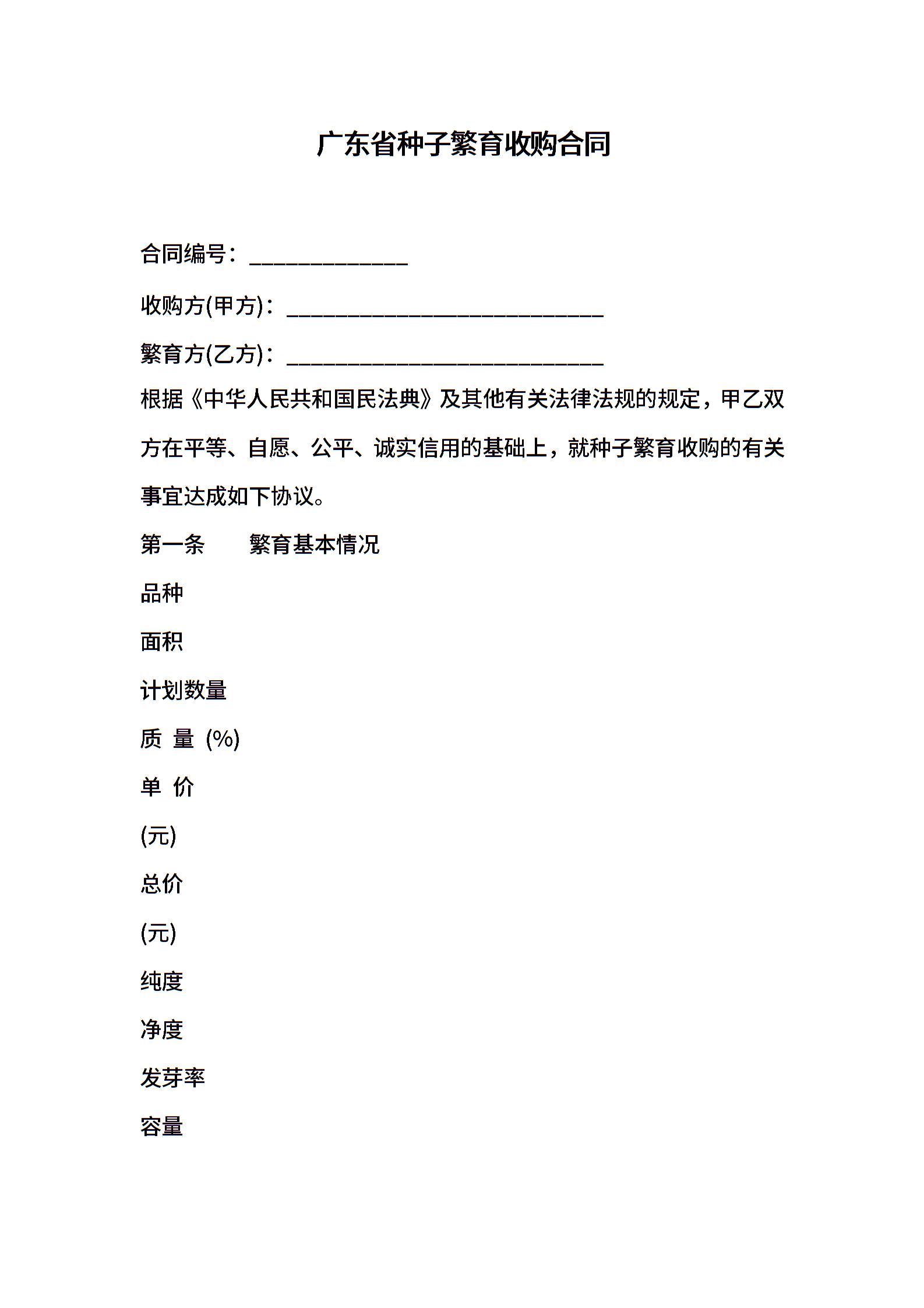 广东省种子繁育收购合同