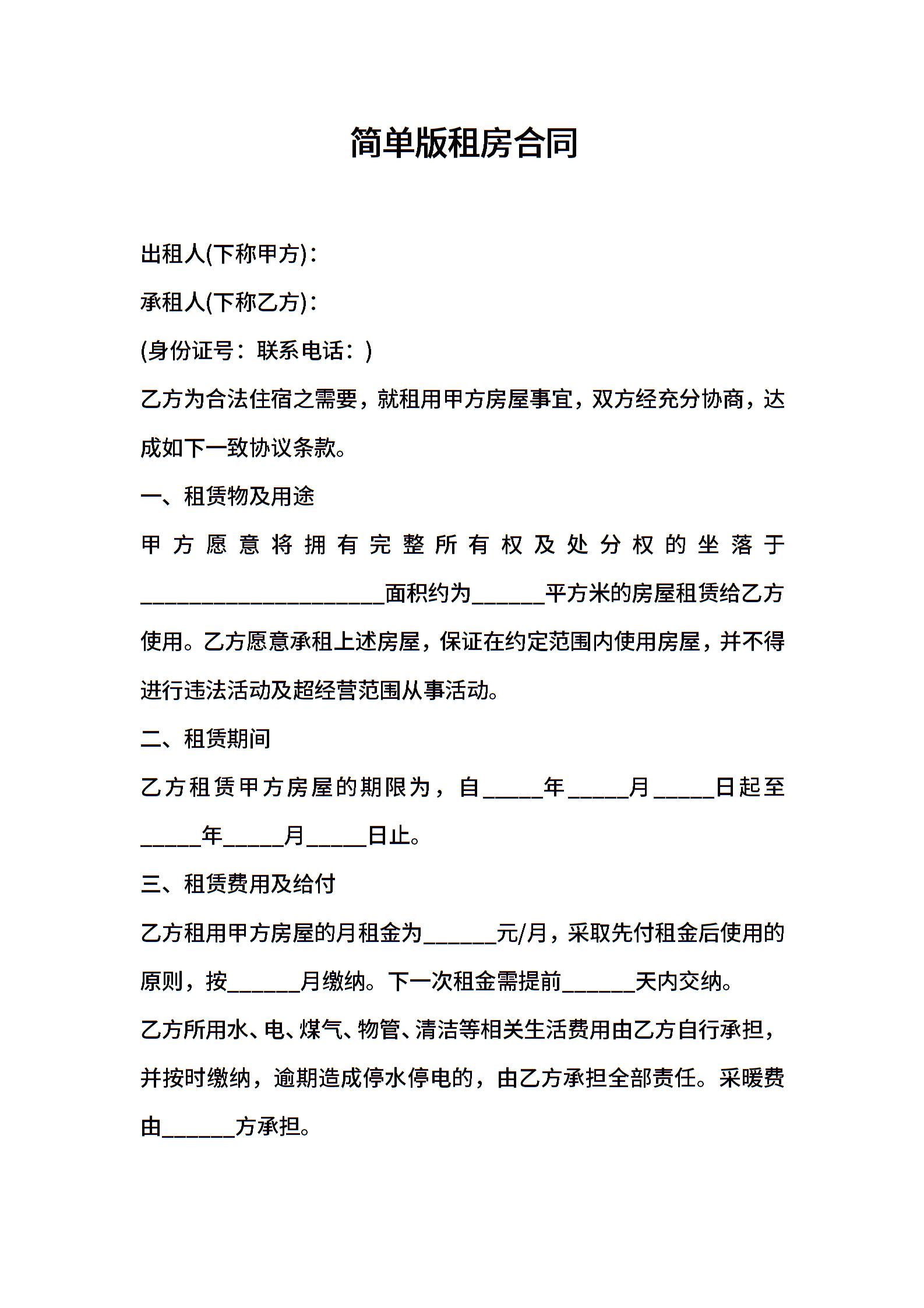 当前位置:量子办公 > 合同模板 > 房屋租赁 >