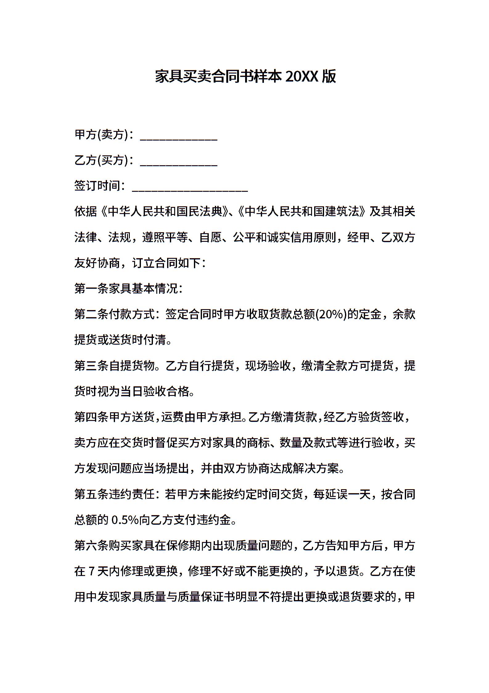 家具买卖合同书样本2021版