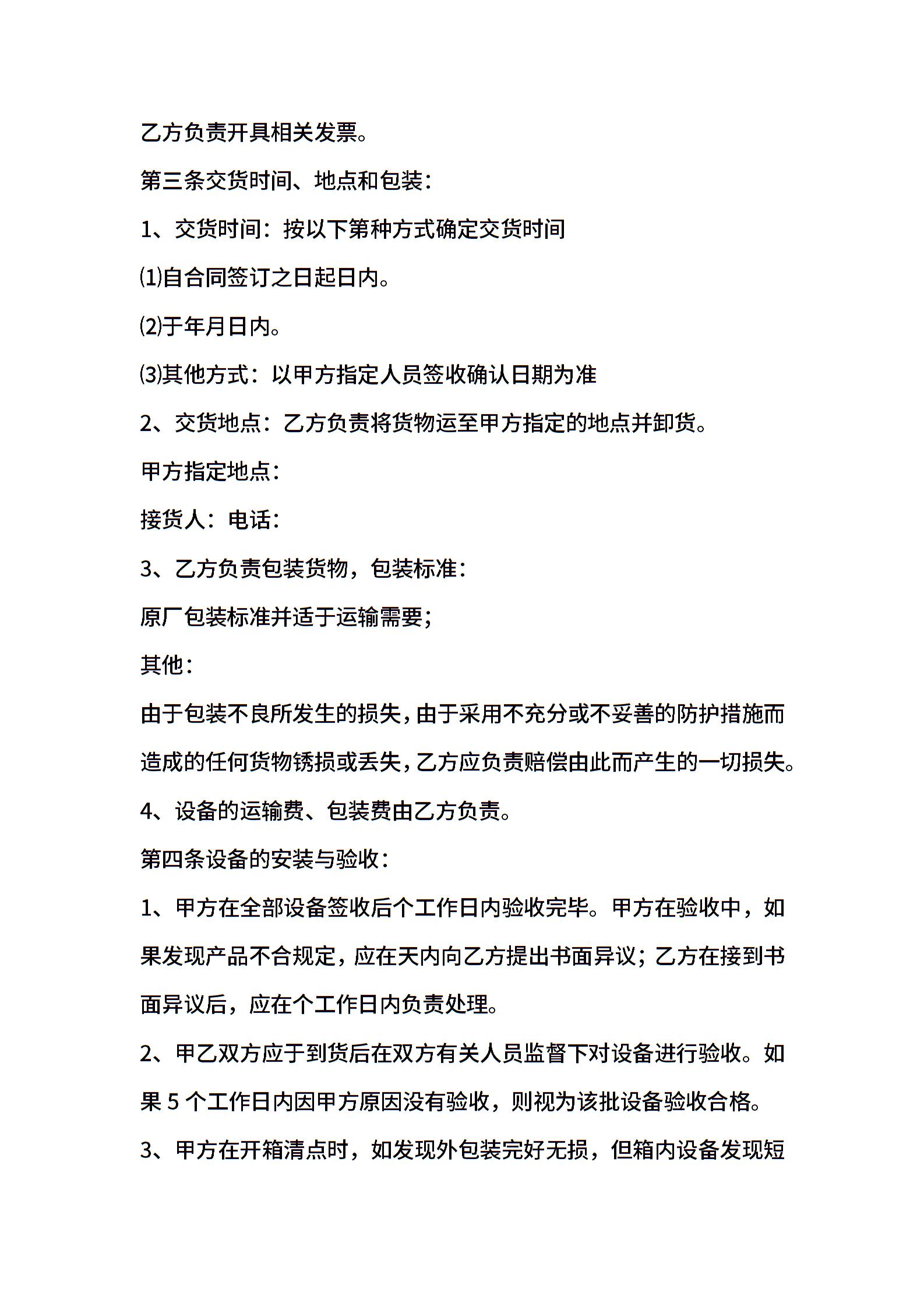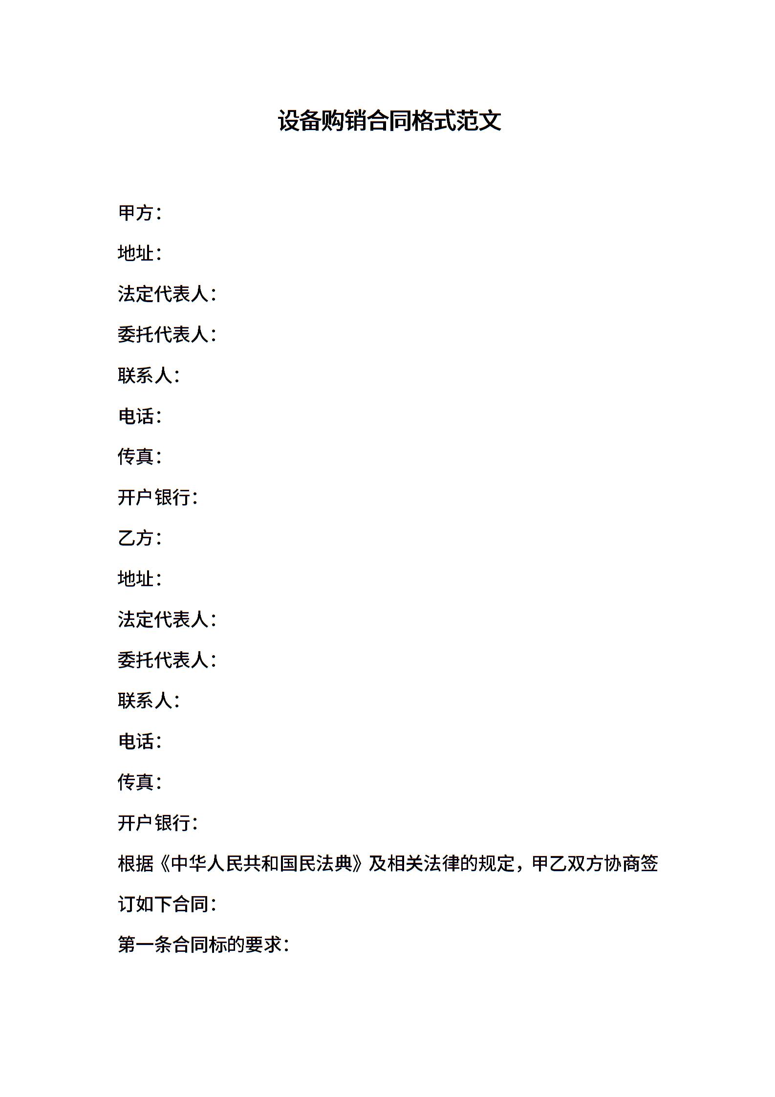 设备购销合同格式范文