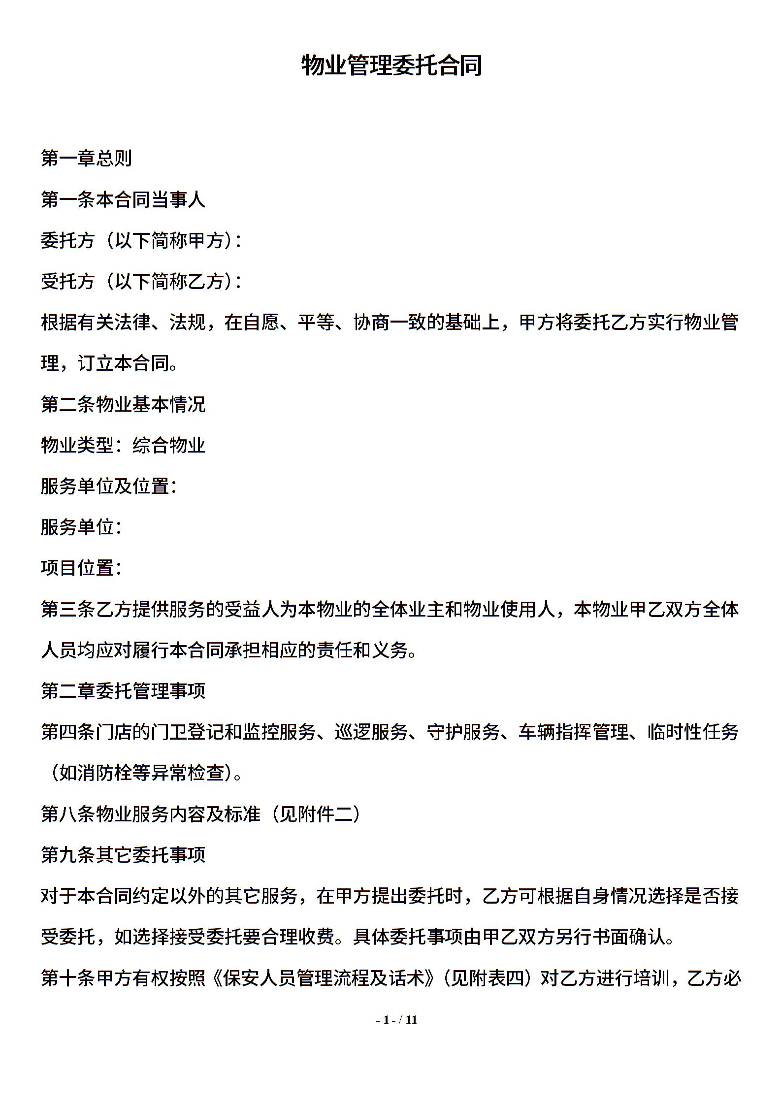 物业管理合同(保安)1