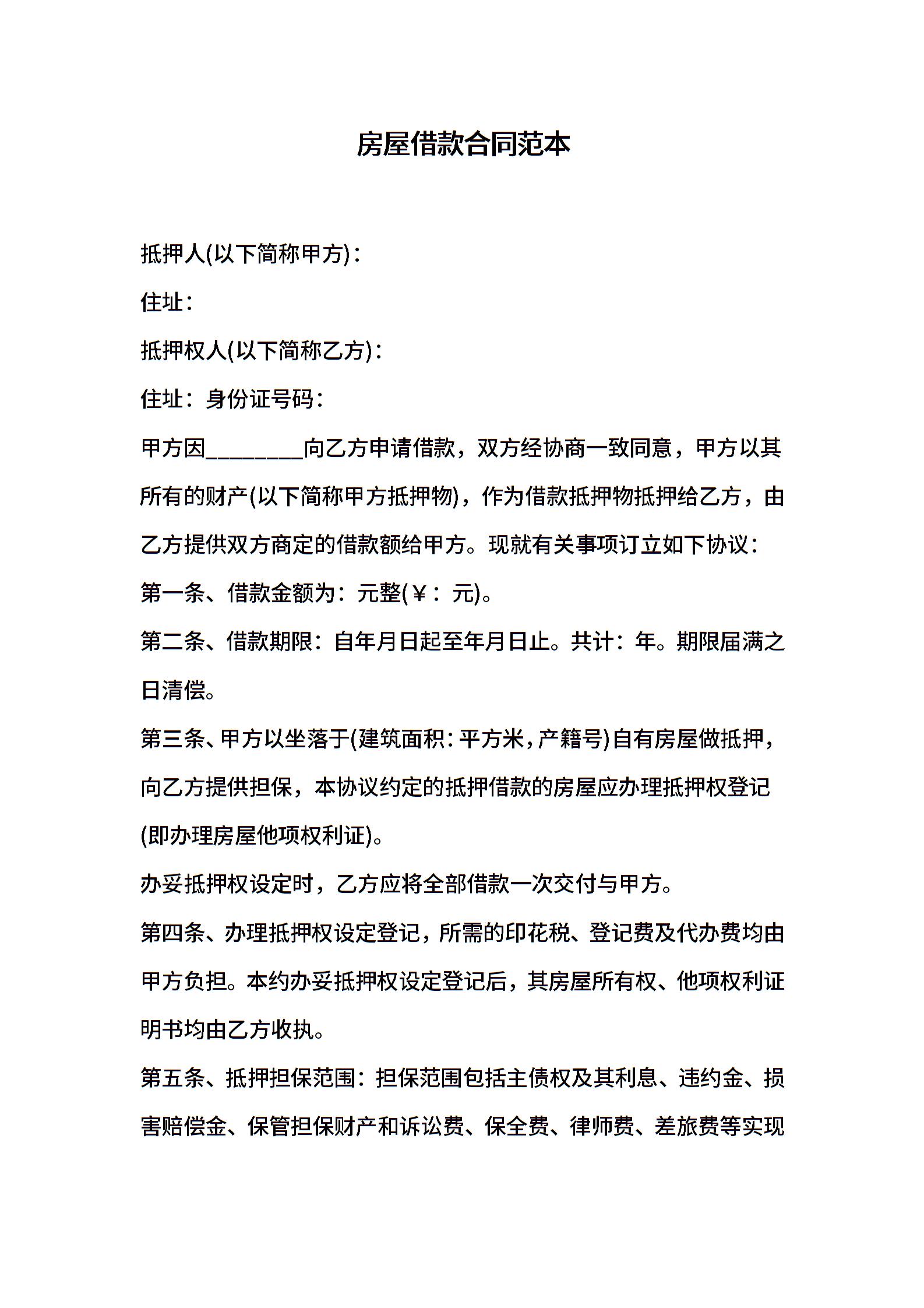 房屋借款合同范本