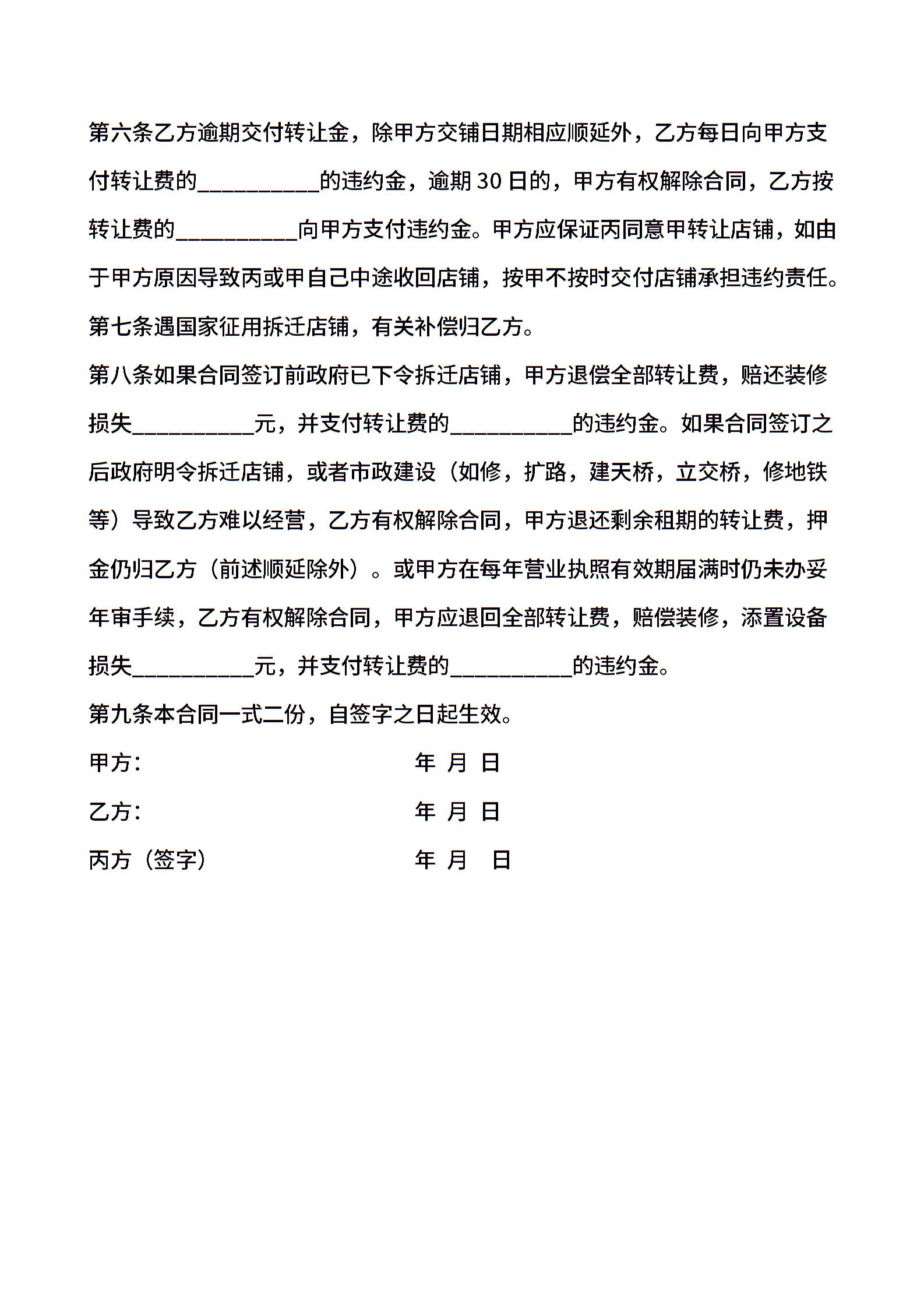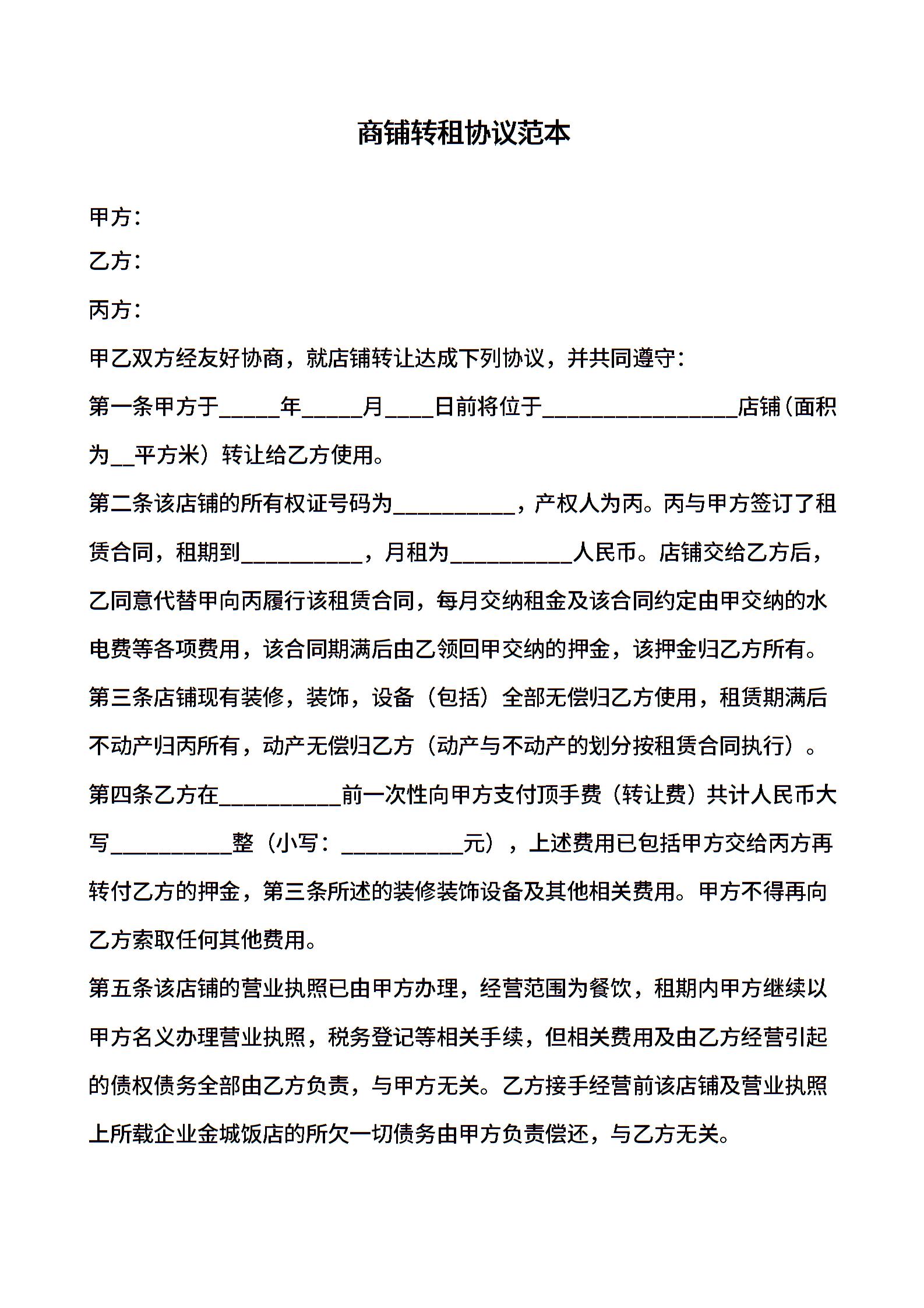 商铺转租协议范本