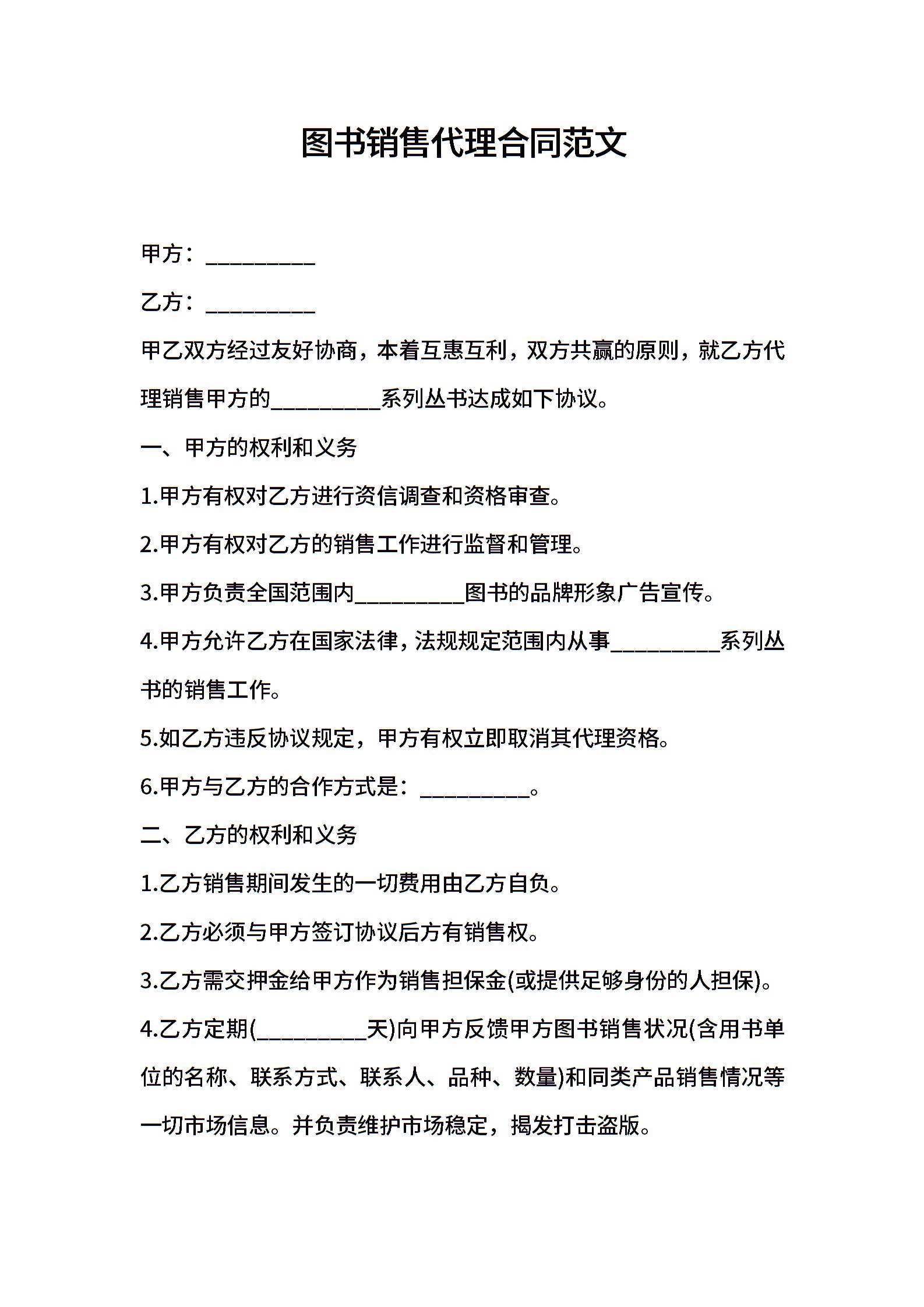 图书销售代理合同范文