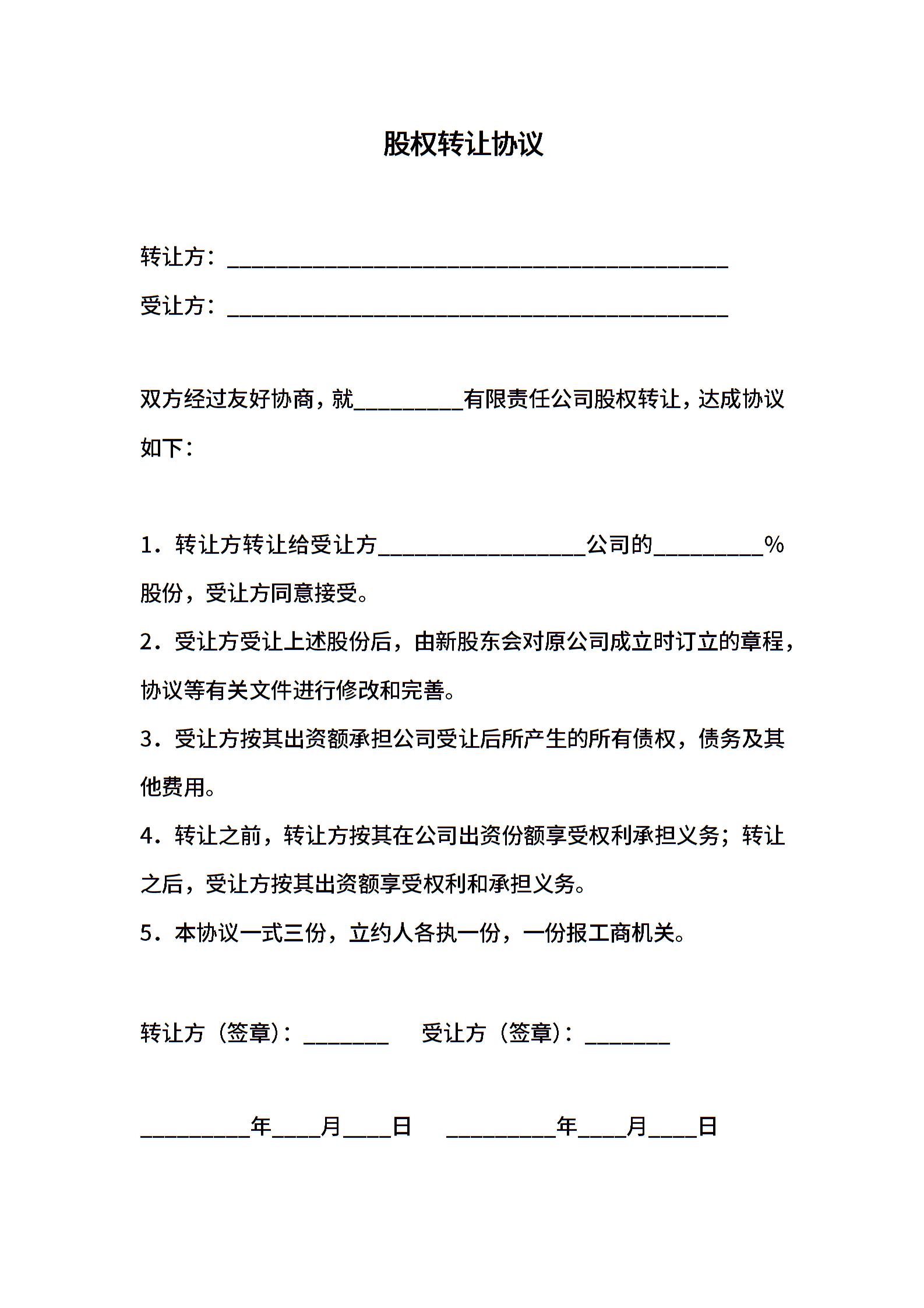 • 分类 股权转让协议