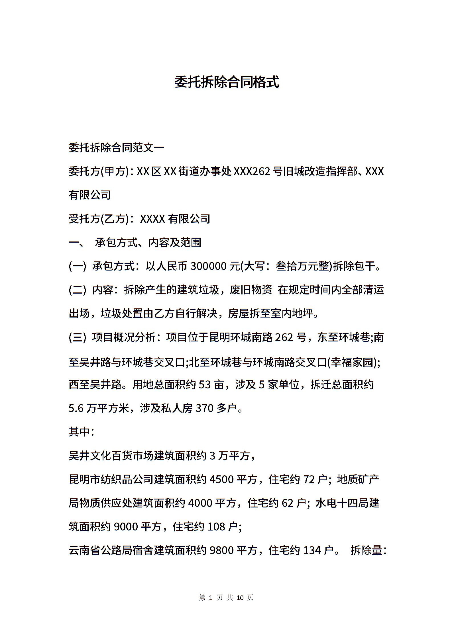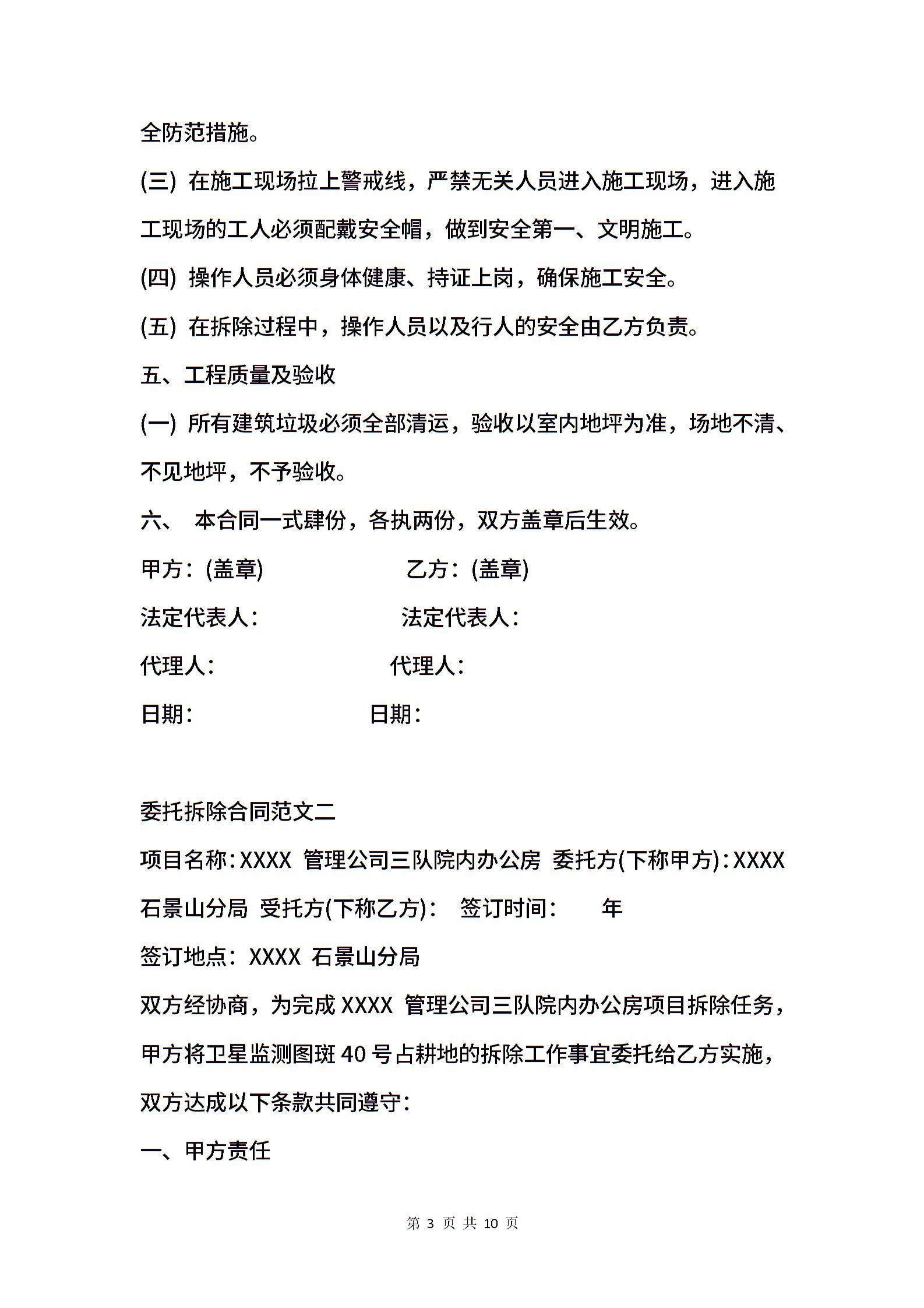 委托拆除合同格式