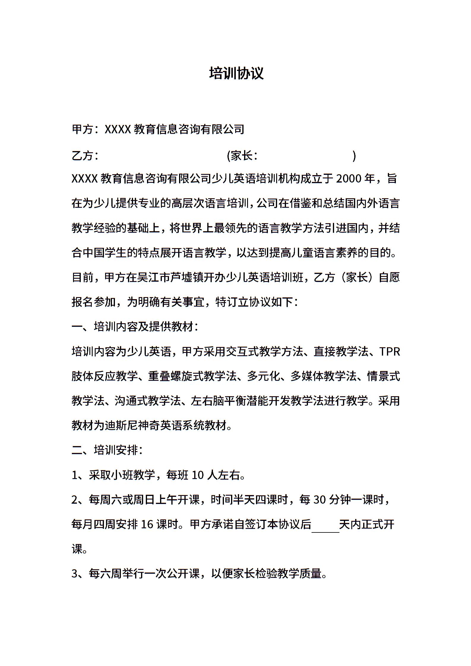 当前位置:量子办公 > 合同模板 > 培训协议 >