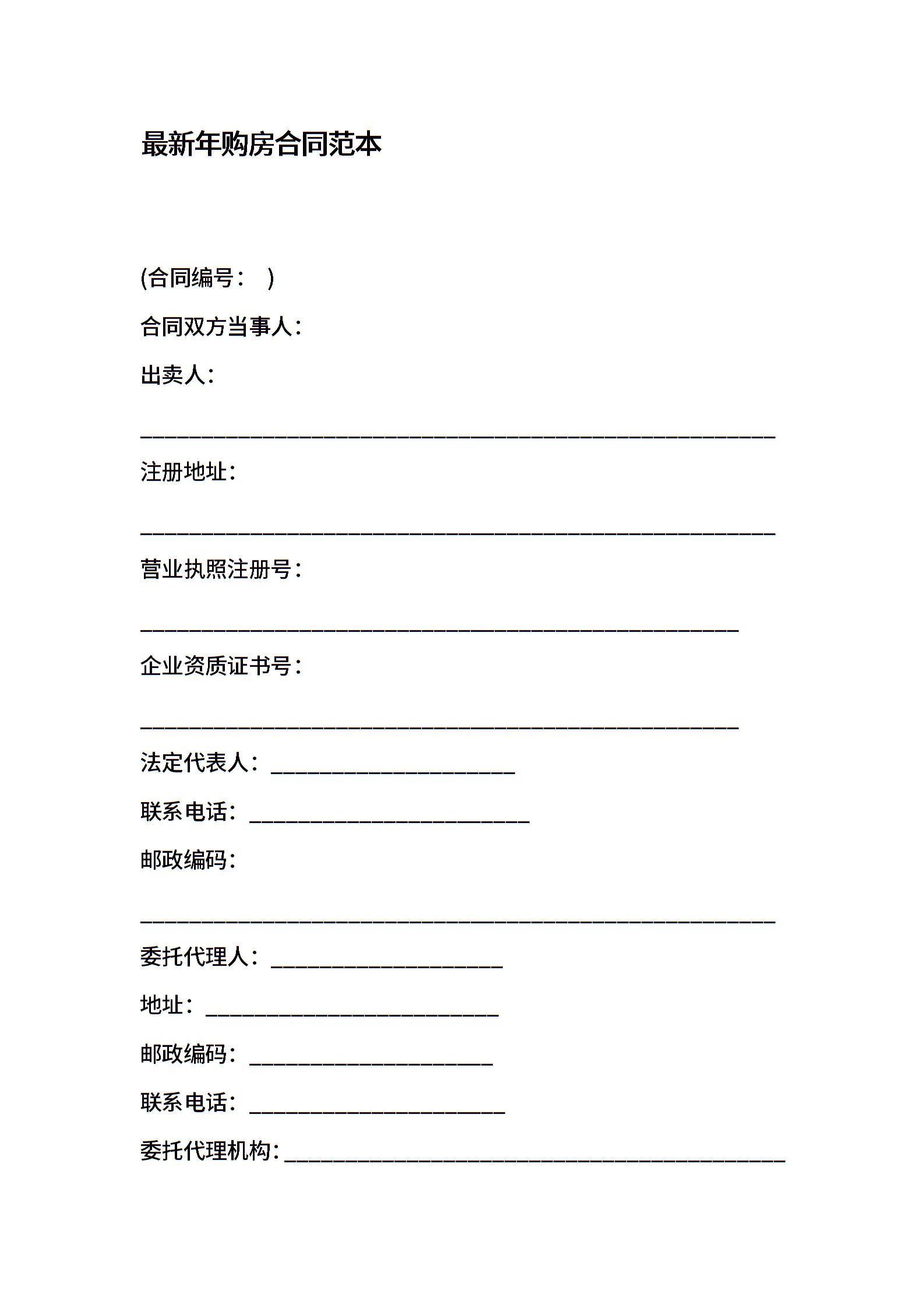 最新年购房合同范本
