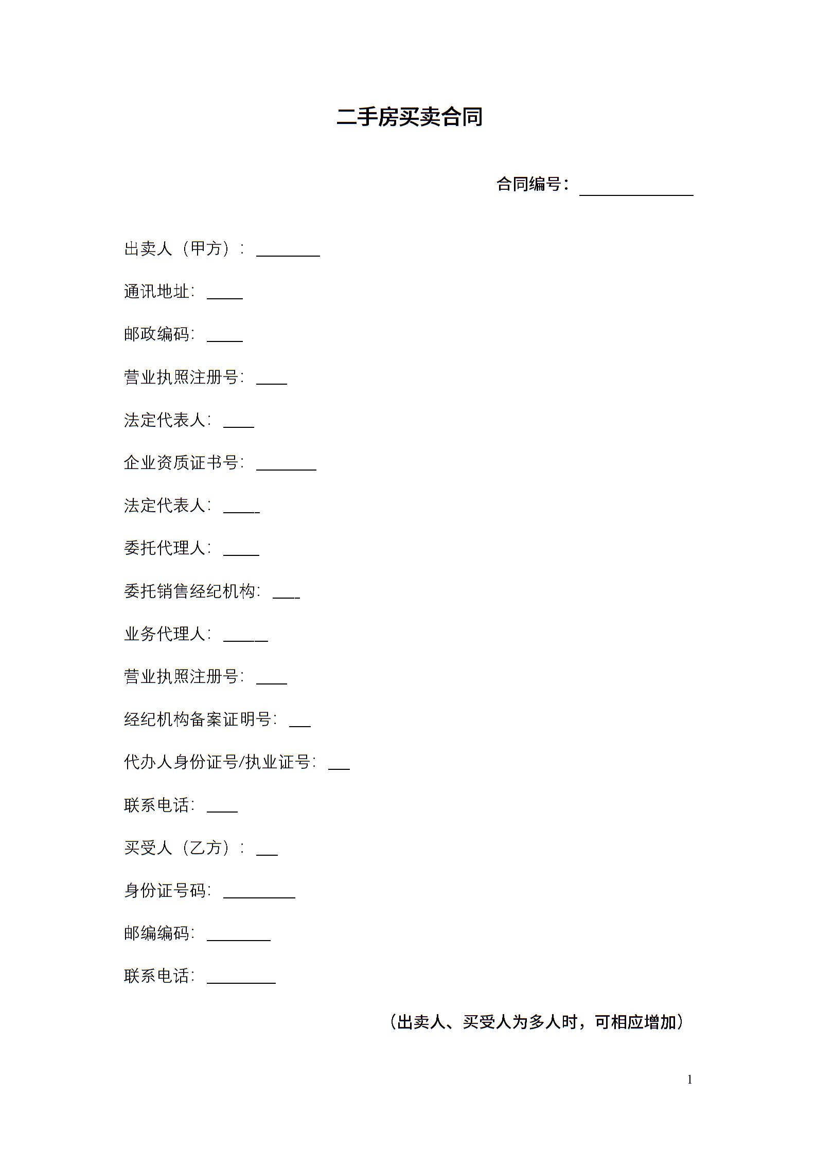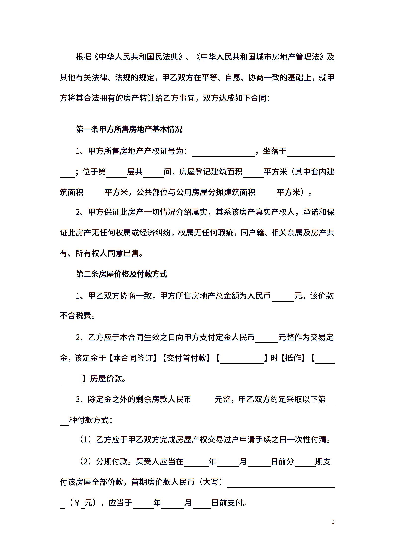 二手房买卖合同(自行成交无中介)-