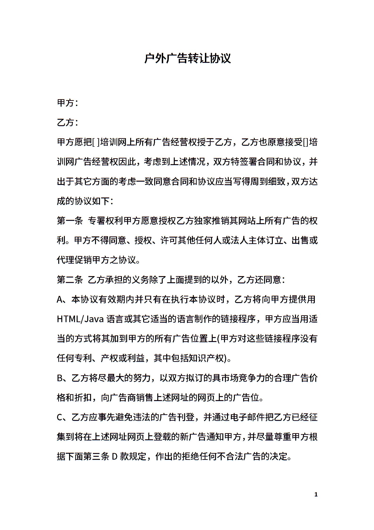 当前位置:量子办公 > 合同模板 > 转让合同 >