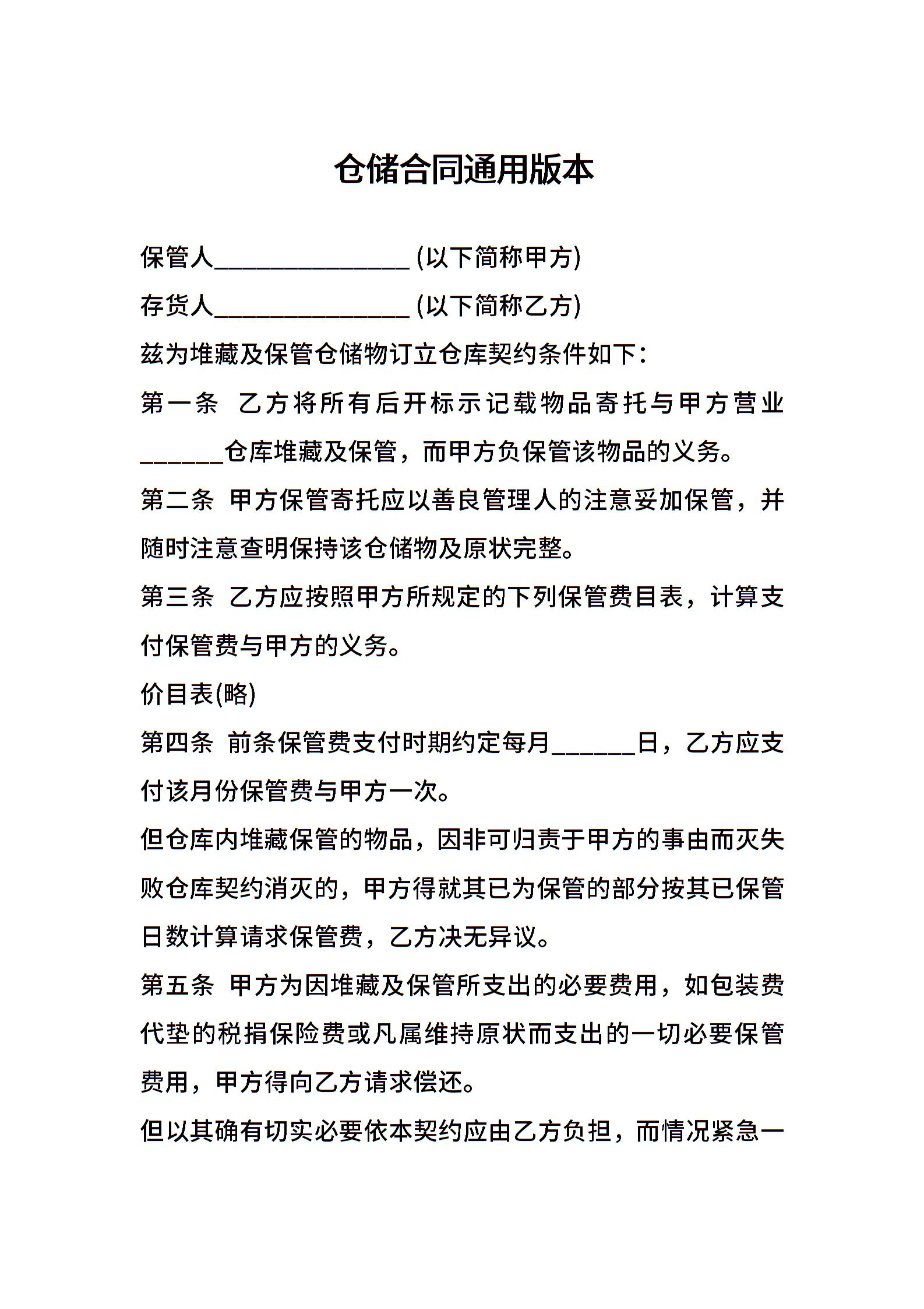 当前位置:量子办公 > 合同模板 > 仓储合同 >