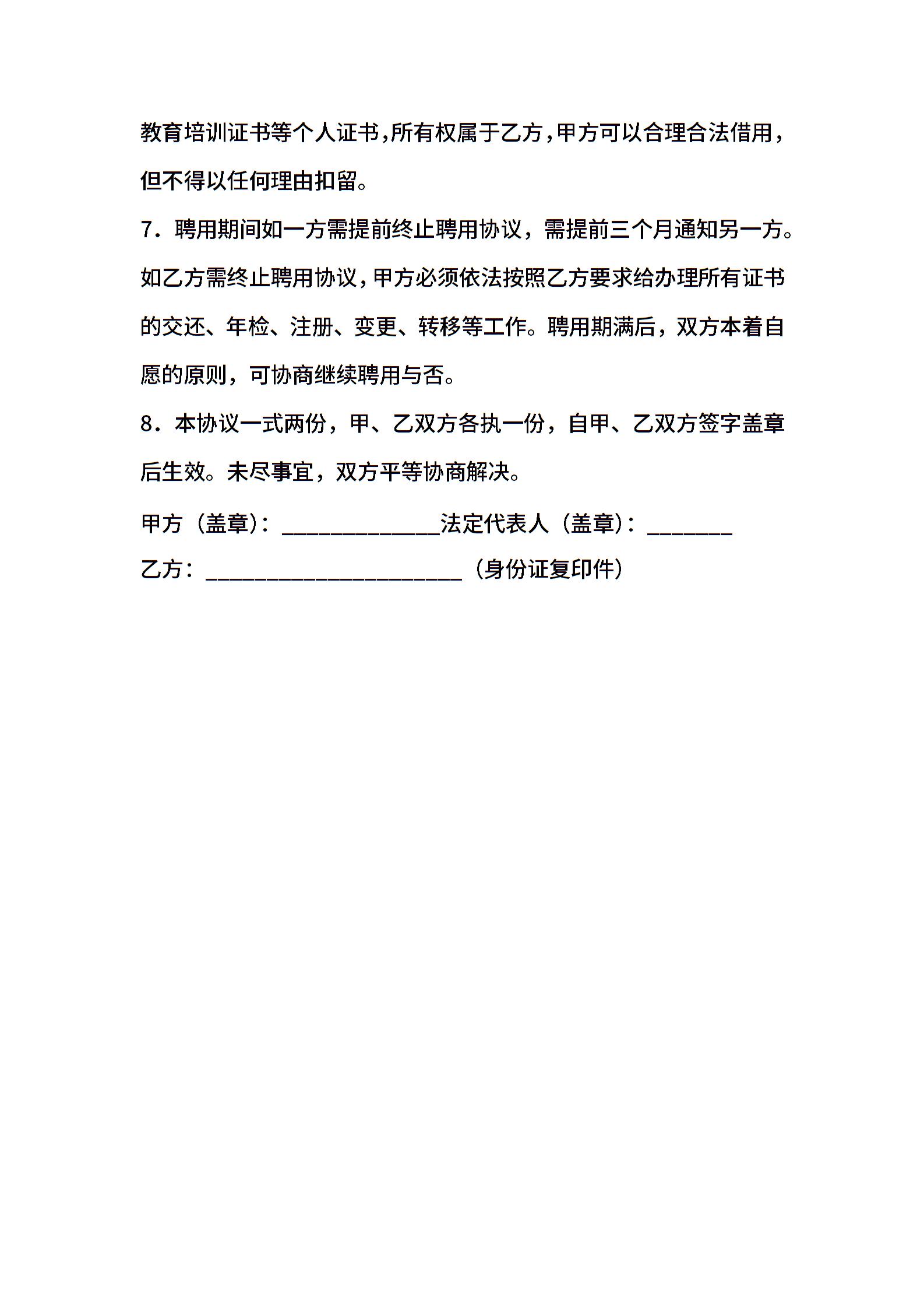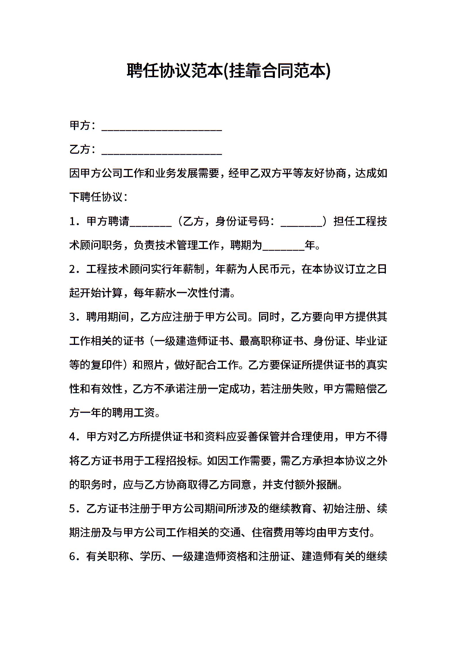 聘任协议范本(挂靠合同范本)