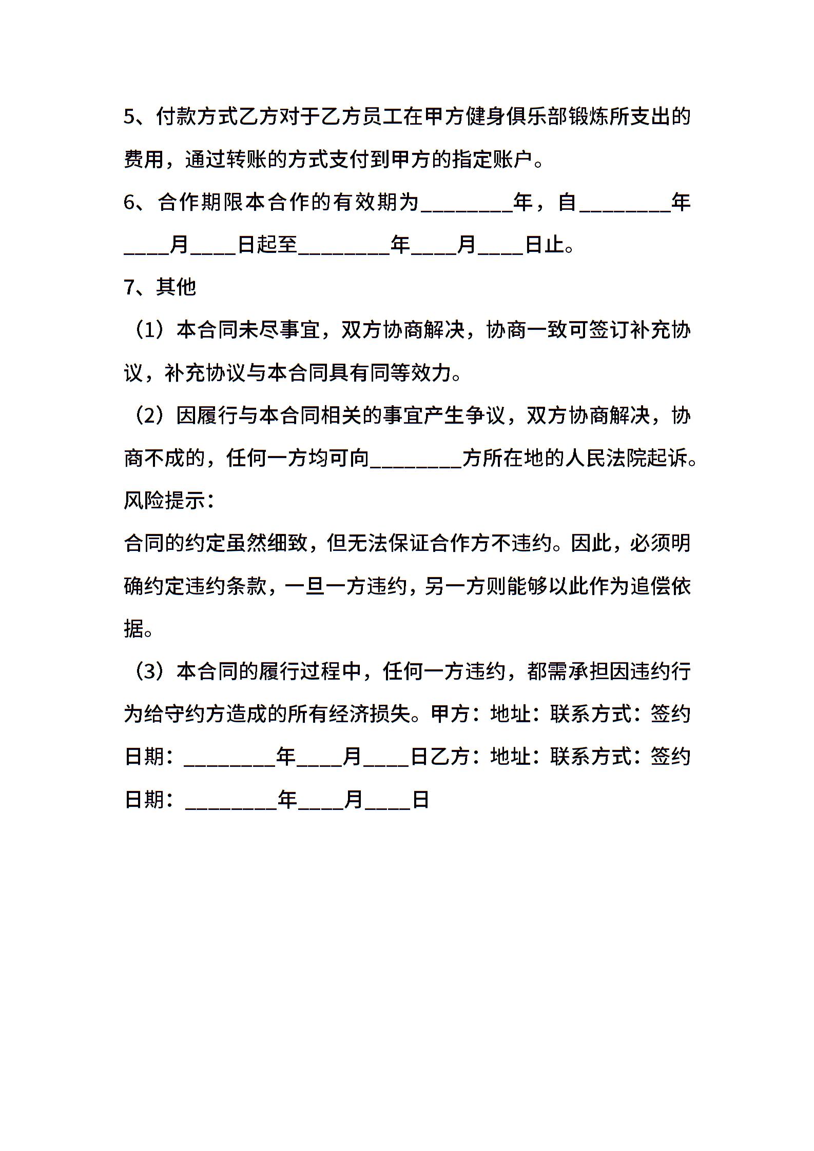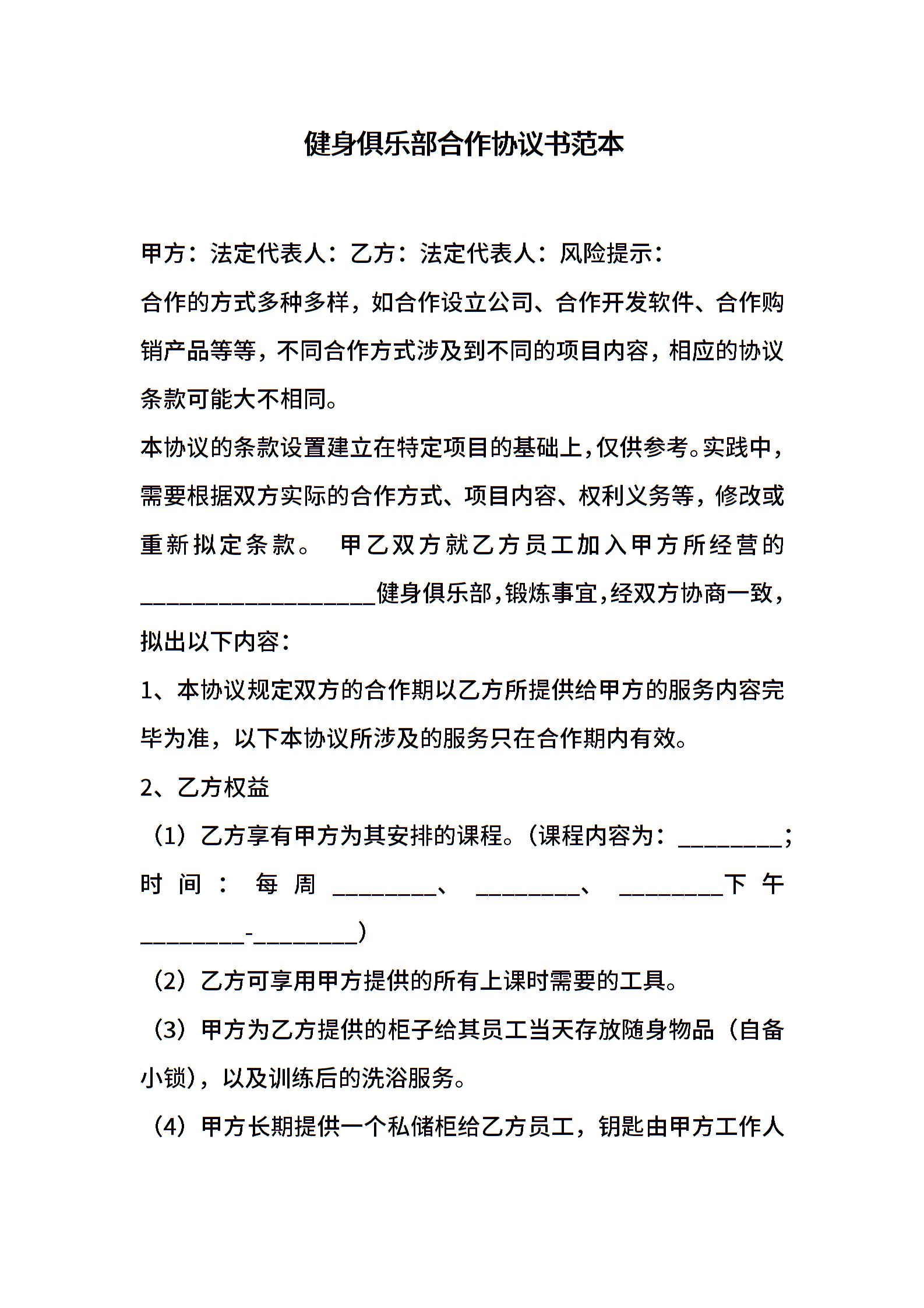 健身俱乐部合作协议书范本