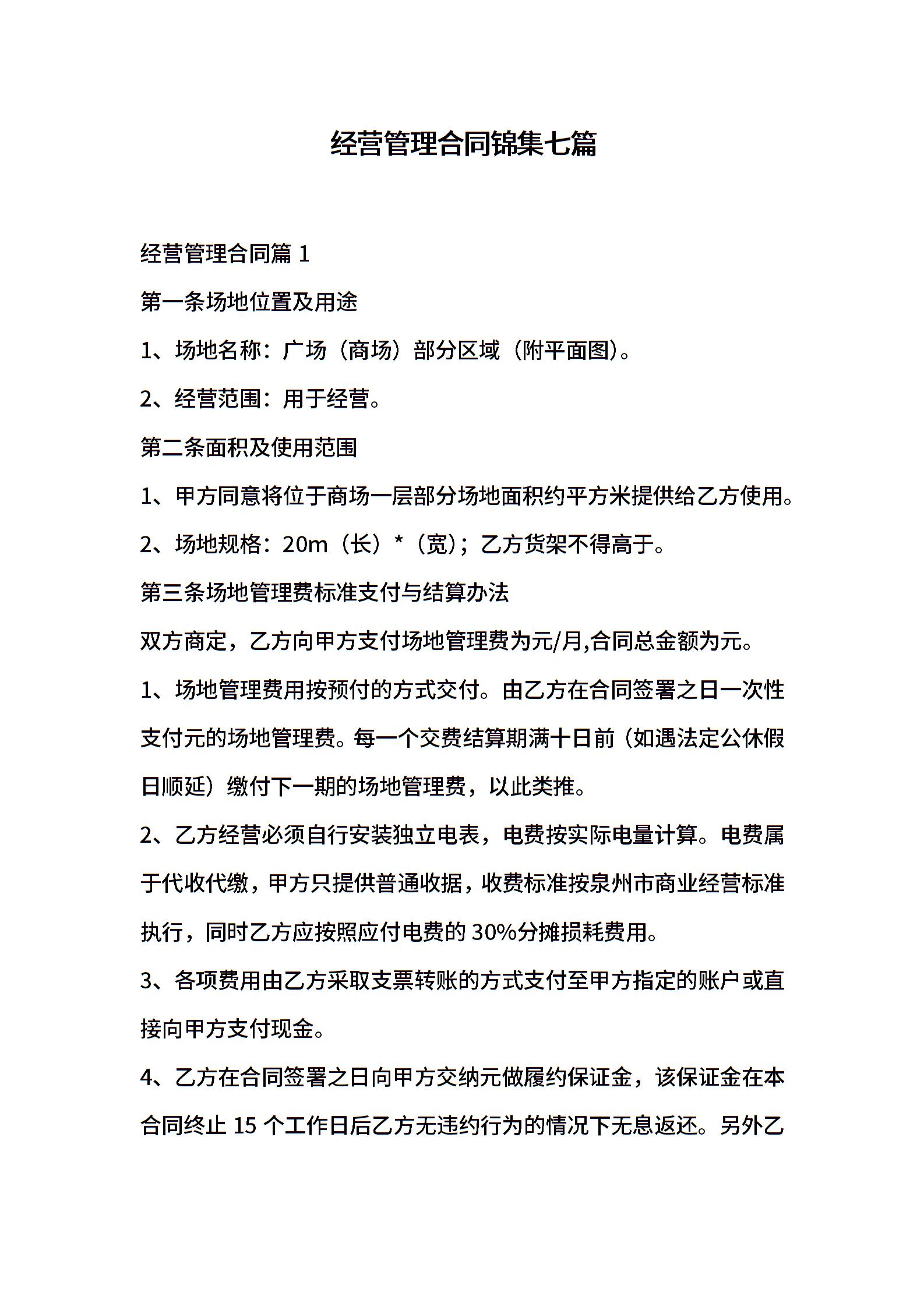 经营管理合同锦集七篇