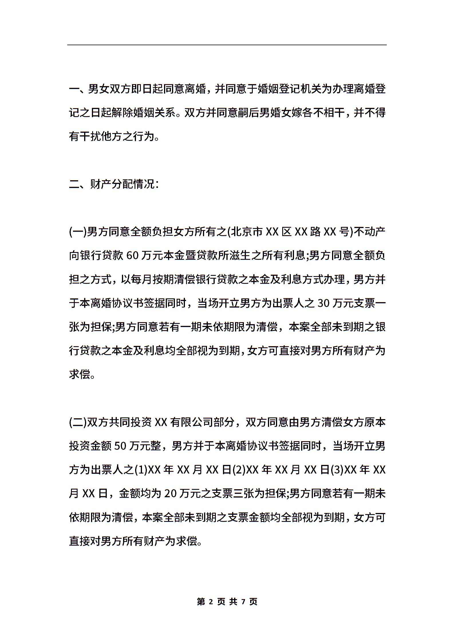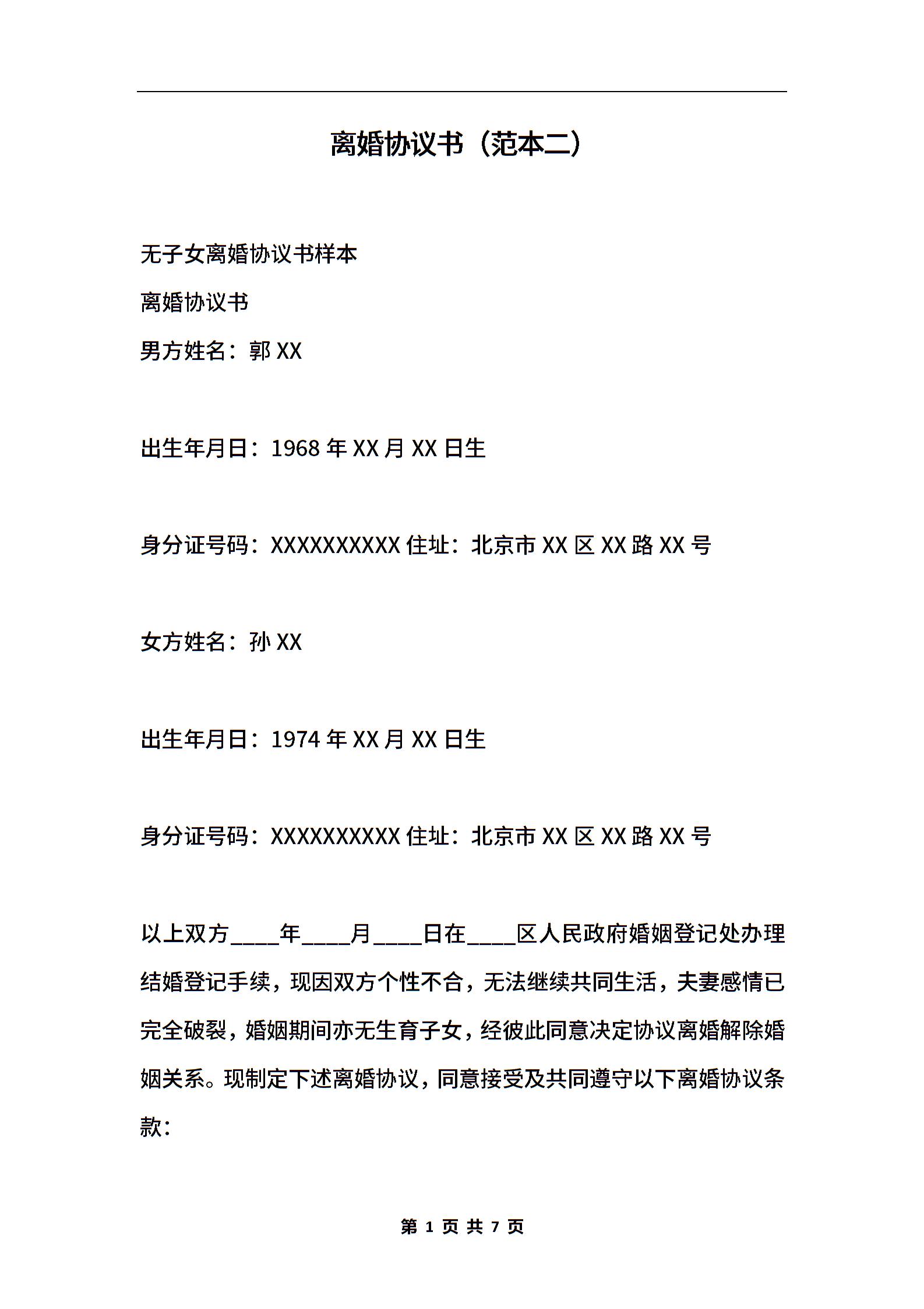 离婚协议书(范本二)