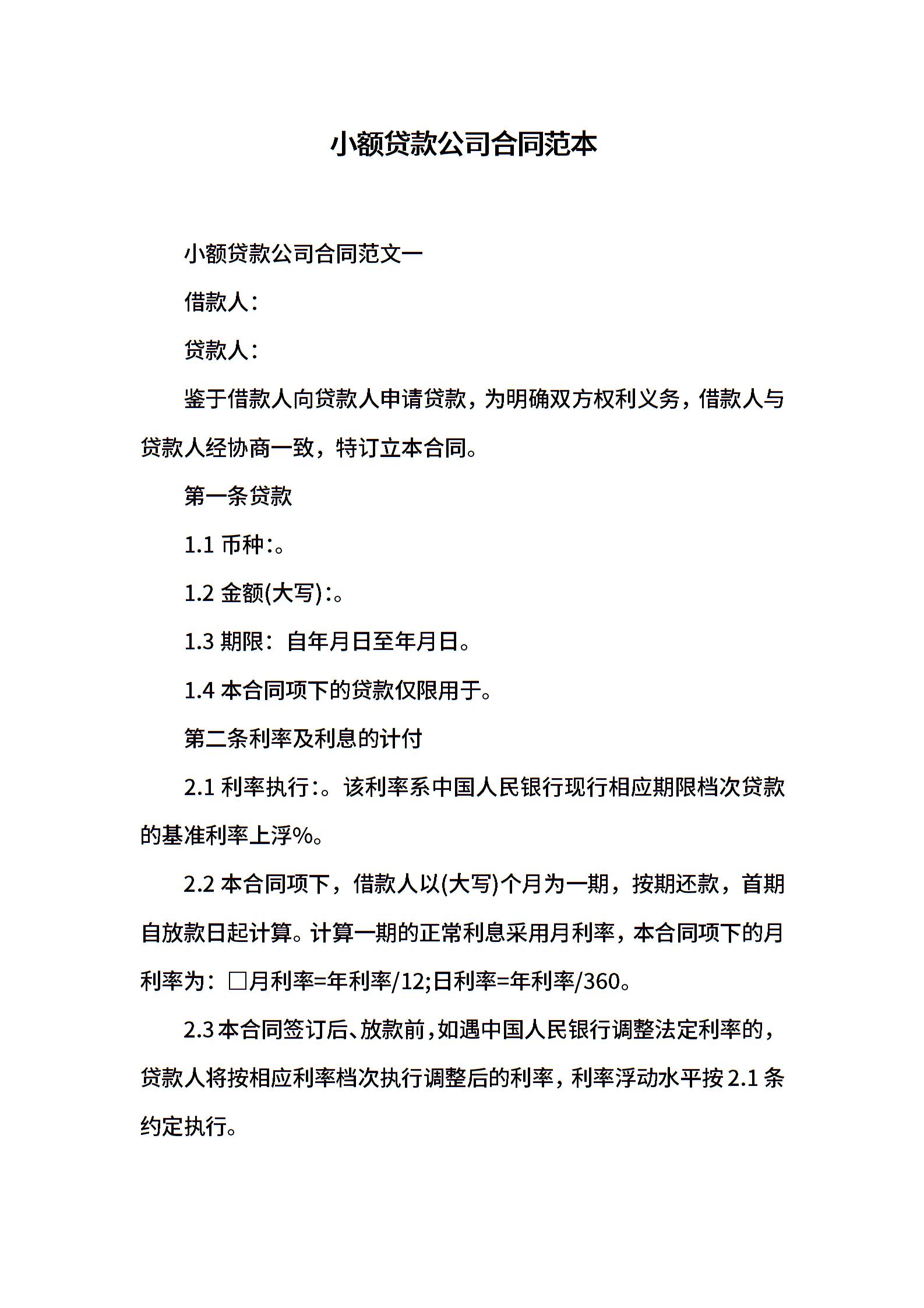 小额贷款公司合同范本