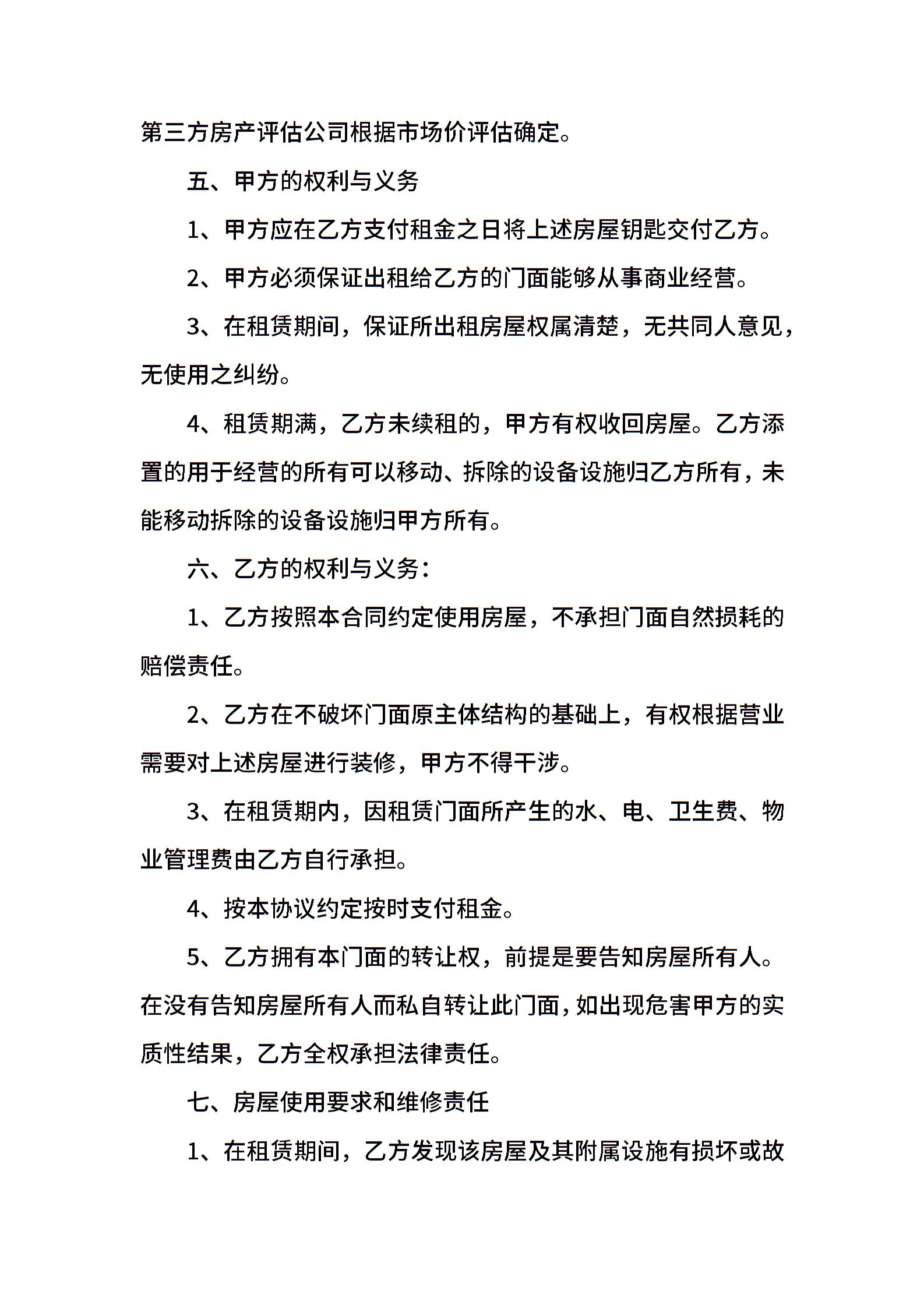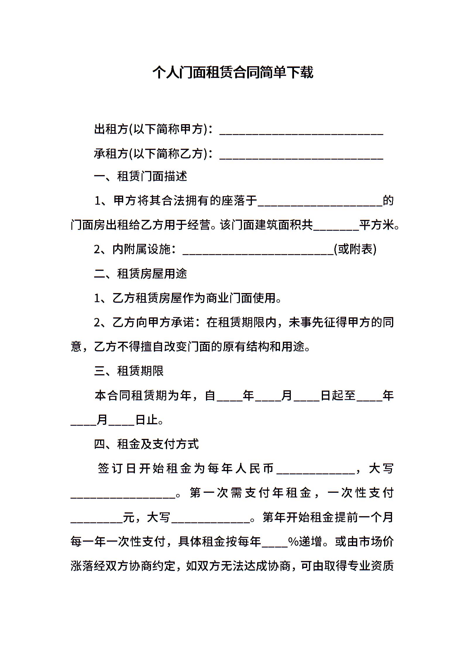 个人门面租赁合同简单下载